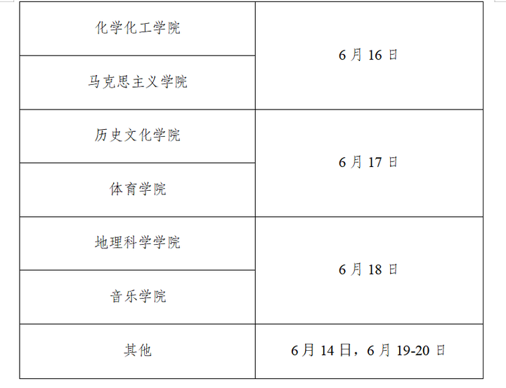 6月10日(星期二)至14日(星期六),6月16日(星期一)至20日(星期五)8:00—11:30,具体时间安排见下表: