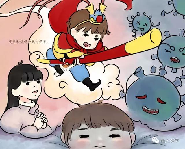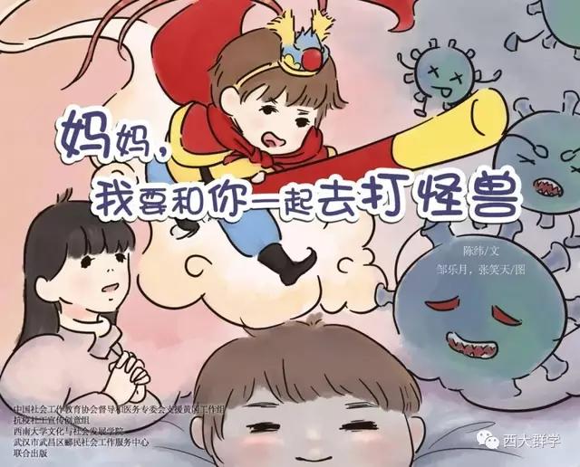 在参加社会工作教育协会督导和医务专委会支援黄冈工作组的工作中,beat365英国官网社会工作系陈纬老师听到了很多医护人员与孩子分离,孩子万般思念父母的故事。有感而发,她专为医护工作者和他们的家庭写了一个故事《妈妈,我要和你一起去打怪兽》,并由文化与社会发展学院2017级学生邹乐月、张笑天为故事配图,做成绘本。绘本展现了在医院工作的妈妈参与抗击新冠肺炎疫情后,孩子元元在家努力和妈妈一起抗击病毒的故事,用生动易懂的语言为孩子解惑,帮助小朋友消除恐惧心理,引导他们看到和理解妈妈的工作,今后也要做打“怪兽”的小英雄。