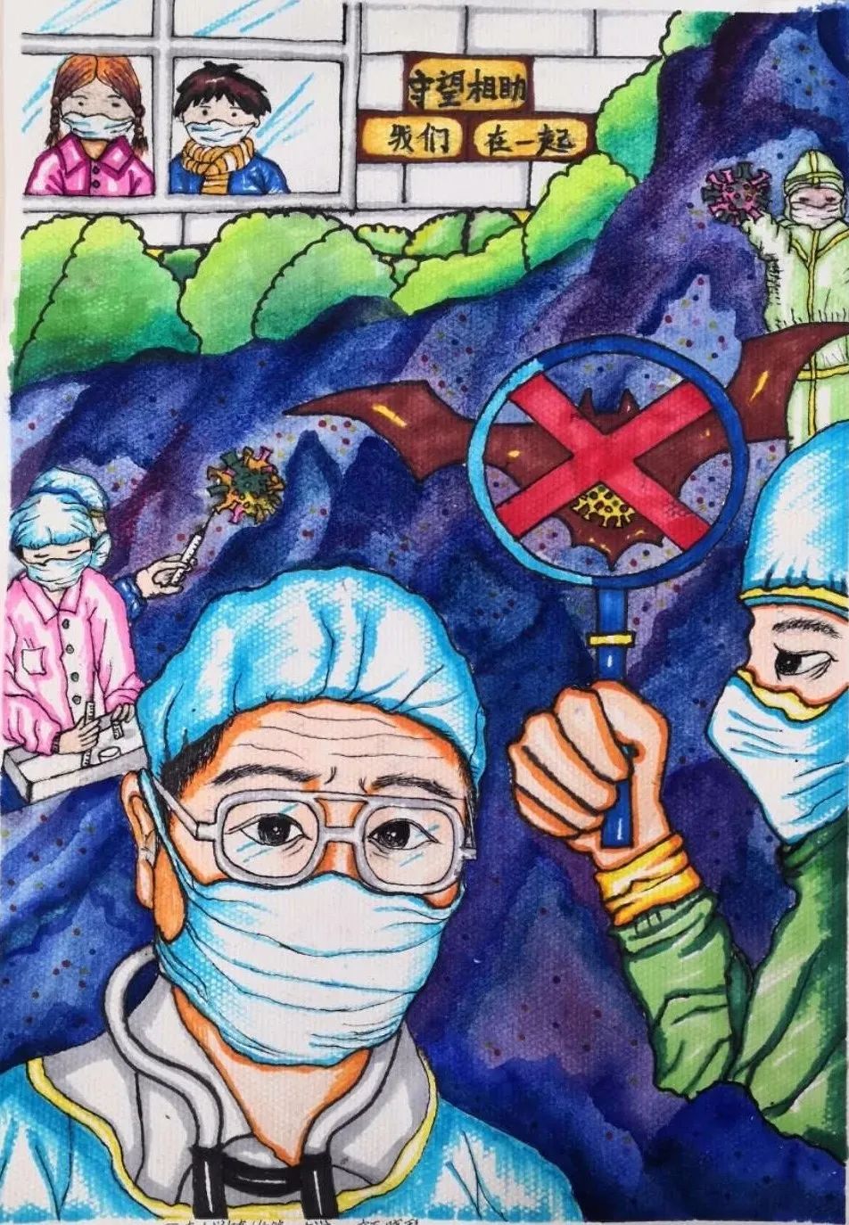 ●作品名称:《齐心协力抗病毒》