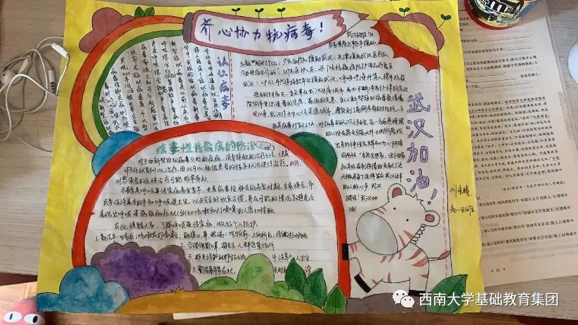 ●作品介绍:刘同学创作的这个手抄报作品十分干净。右下角的小动物更是吸引了评委老师。同时,作者从病毒性传染病的防治、认识病毒等方面传递了信息。