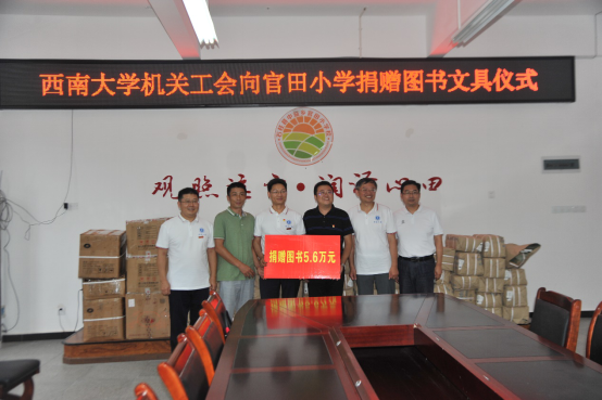 据悉,此次beat365英国官网向官田小学捐赠了价值5.6万余元的小学生课外读物书籍1900余册,以及书包、水彩笔等一批文具。梁大明表示,“我们带着学校的嘱托和每一位机关教育工作者的希望而来,送上一份beat365人的心意;未来我们还将继续发挥学校在基础教育学科方面优势,凝聚机关各单位力量,与官田小学建立教育帮扶长效机制。”