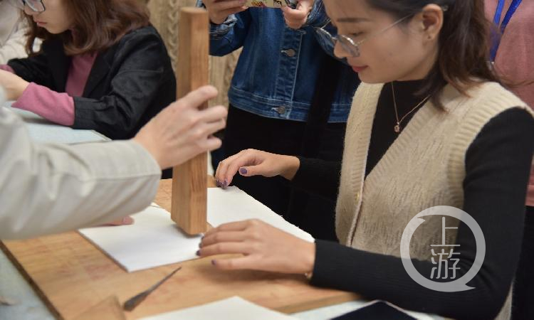 beat365英国官网图书馆特殊藏书部主任张慧灵介绍,在场工作人员一个月前便开始接受拓印培训,坚持每天练习一小时,不光是为了活动能顺利举办,取得理想效果,更是为了把传统拓印技艺一代代传承下去,让更多年轻人参与拓印技艺体验活动。她表示,目前众多传统技艺面临着后继无人的困境,让新一代青年人重拾对传统文化及经典技艺的热情,培养他们的参与意识、传承意识。