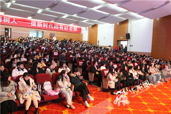 “这才是中国教师的样子”“‘乡村妈妈’好样的”“有颜值有才华有真心的教师们好接地气”…… 老师们娓娓的讲述、生动的事例、澎湃的激情、真切的体悟、真挚而浓烈的师爱,打动了在场的师生,赢得了台下阵阵掌声和心灵的共鸣。