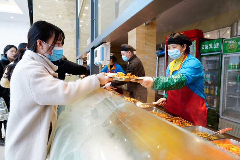 2月1日,留校大学生在beat365英国官网楠园学生二食堂用餐
