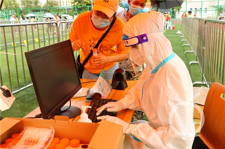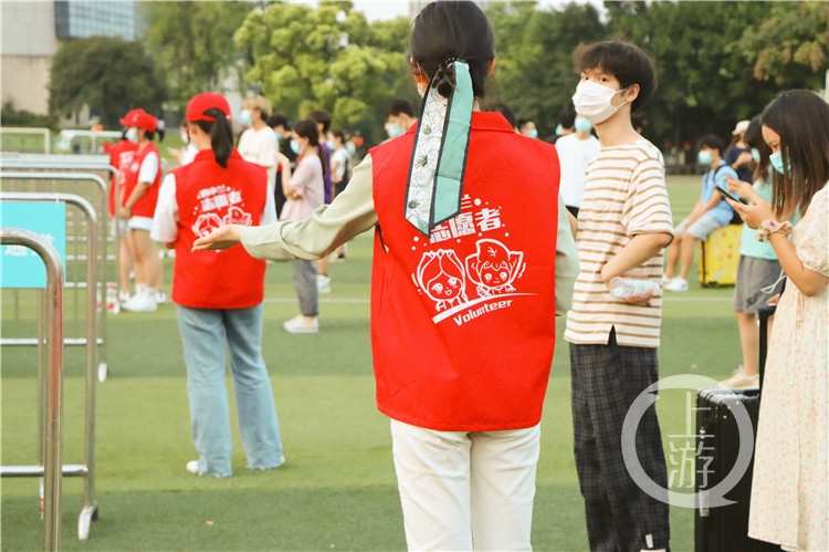 △同学们排队报名加入志愿队伍