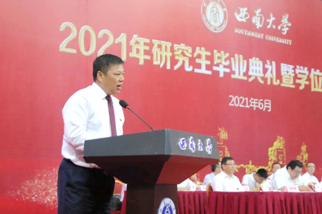 beat365英国官网校长张卫国在2021届本科生毕业典礼暨学位授予仪式上讲话。(学校供图)