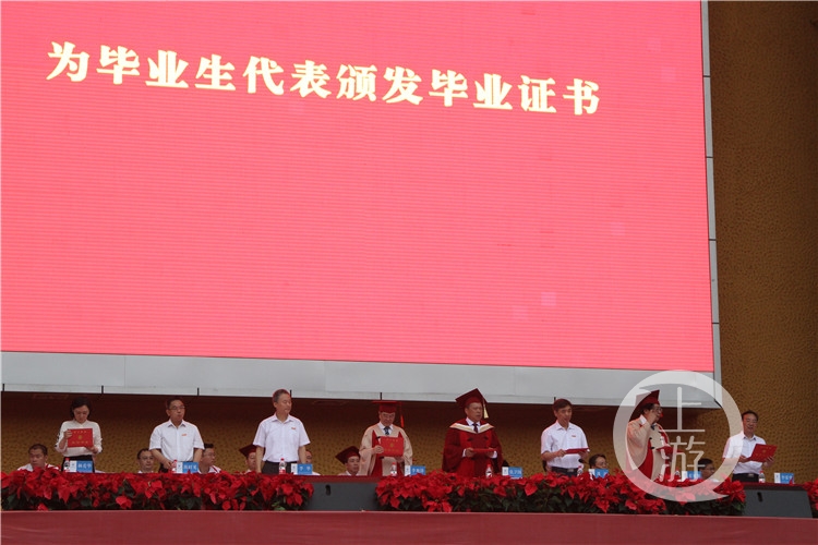 现场,有一家人准备了鲜花正在合影留念。“我们是从武汉赶来参加孩子的毕业典礼的,这是他人生最重要的时刻,我们不能缺席。”家长谢女士告诉记者,儿子的外婆78岁,克服了自身许多困难来到重庆,就是为了亲眼见证外孙的这一刻。