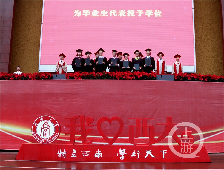 “我是专程回来参加毕业典礼的,我穿了学士服,拍了毕业照,也算是弥补了去年没有参加毕业典礼的遗憾,我内心非常高兴!”来自经管学院的向佳怡是2016级毕业生,去年因为新冠疫情未能到场参加毕业典礼,今年特地赶来完成心愿。她表示,毕业后她仍在努力备考,今年考上了重庆大学研究生,未来她将继续努力,不辜负母校对自己的培养。