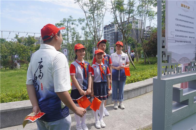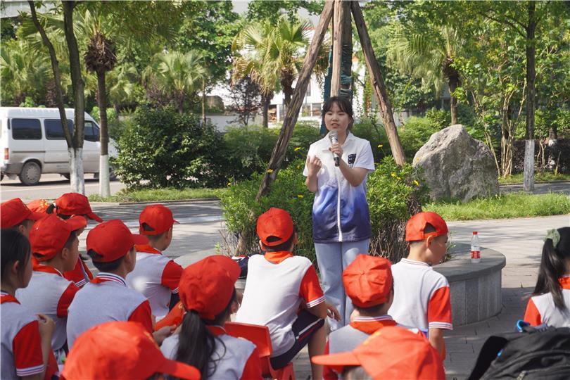 近日,在北碚缙云法治文化公园, beat365英国官网廌鸣法律社的青年志愿者们为北碚区华光小学6.1班的同学们上了一堂别开生面的沉浸式中小学法治教育课。