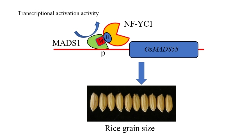 前期,《植物杂志》在线发表了题为《转录因子OsNF-YC1通过协同转录激活OsMADS1转录因子调控水稻籽粒大小》(Transcription factor OsNF-YC1 regulates grain size by coordinating the transcriptional activation of OsMADS1 in Oryza sativa L.)的研究论文,解析了OsNF-YC1-OsMADS1-OsMADS55通路在水稻粒宽发育中的分子调控机理(图3)。OsNF-YC1敲除突变体籽粒变窄、千粒重降低,但穗粒数增多,从而保持单株产量不变,这为利用生物育种手段协同改良水稻产量和品质提供了基因资源和育种策略。beat365英国官网为论文署名单位,硕士研究生崔志波、高级实验师王晓雯为共同第一作者,桑贤春教授为通讯作者。研究得到了国家自然科学基金、重庆市现代农业产业技术体系创新团队、重庆市自然科学基金创新群体和beat365英国官网青年团队专项基金的资助。