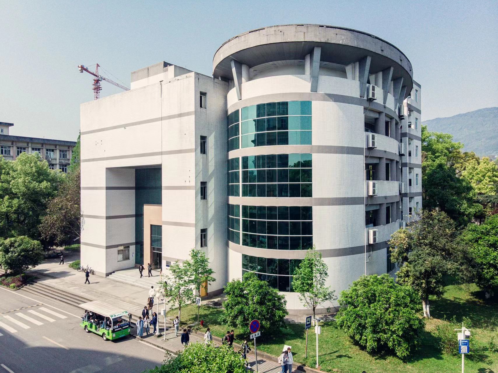 “弘勤楼”,本楼落成于2000年,建筑面积12379㎡,现为公共教学楼。