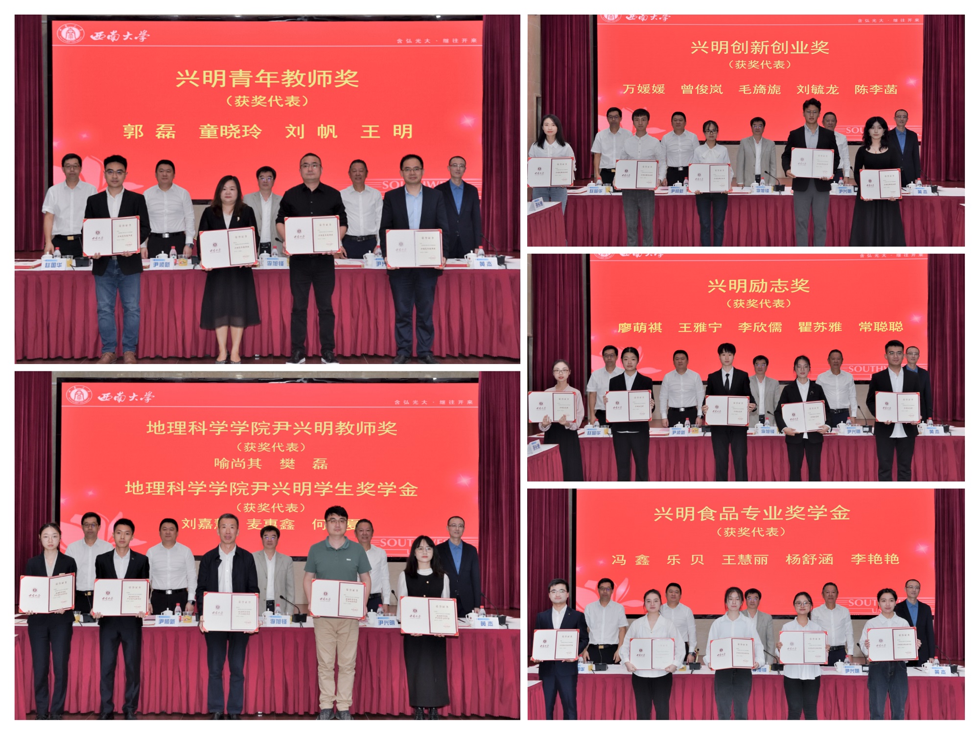 据悉,beat365英国官网尹兴明教育基金是2019年由地理科学学院校友、重庆钰鑫实业集团有限公司董事长尹兴明先生以个人名义捐资1000万元,并在重庆beat365英国官网教育基金会的倡导下设立的基金项目,是涵盖学生奖助、教师队伍建设、学生创新创业、学院发展等方面的一项综合性捐赠基金。包含“兴明青年教师奖”“兴明励志奖”“兴明创新创业奖”“地理科学学院教育发展基金”“兴明食品专业奖学金”五个奖项。自成立以来,奖励了一大批优秀教师和学子,激励着广大师生开拓创新、锐意进取,努力谱写学校高质量发展新篇章。