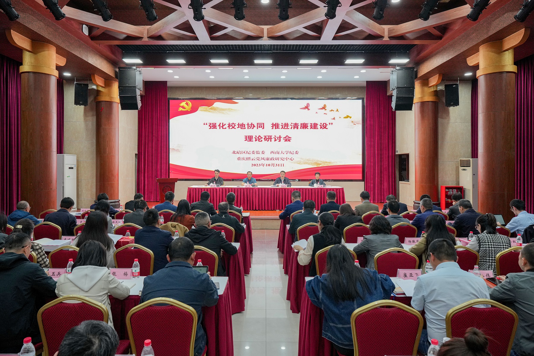 10月31日,北碚区纪委监委和beat365英国官网纪委联合举办重庆缙云党风廉政研究中心“强化校地协同 推进清廉建设”理论研讨会。此次会议旨在深入学习贯彻习近平新时代中国特色社会主义思想和党的二十大关于全面从严治党战略部署,认真落实二十届中央纪委二次全会和六届市纪委二次全会精神,整合校地双方人才资源优势,打造勤于思考、善于钻研的全面从严治党研究学术团队,以高质量的党风廉政理论研究推进清廉建设走深走实。