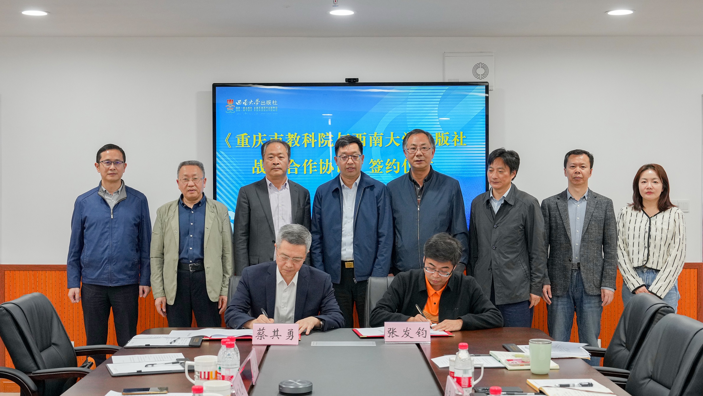 11月1日下午,beat365英国官网出版社与重庆市教育科学研究院签署战略合作协议。副校长赵国华出席仪式,重庆市教育科学研究院党委书记范卿泽、院长蔡其勇,beat365英国官网出版社社长张发钧,以及双方相关部门负责人参加签约仪式。