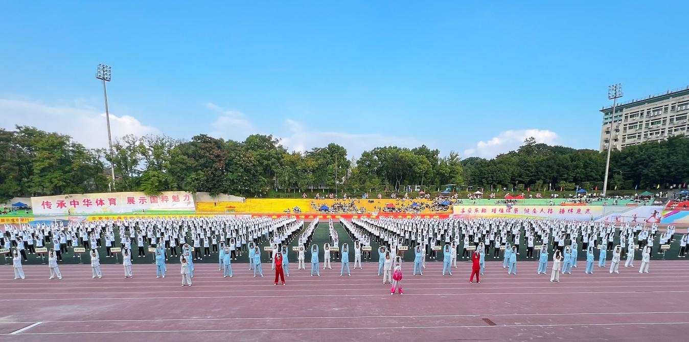 本次中华传统体育项目展示为八段锦,该展示项目由1000位学校热爱传统体育的广大师生编排而成,包括离退休教职工、在职教职工、博士生代表,以及来自35个学院的2023级本科生代表。他们因为共同的爱好欢聚在一起,以老带新,通过中华传统体育项目——八段锦柔筋健骨,弘扬了中华儿女精气神。