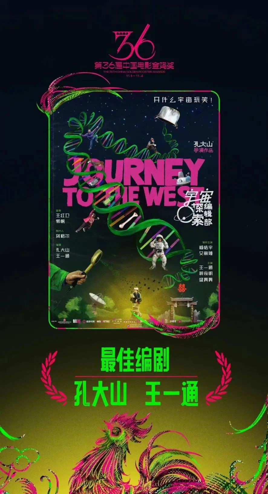 近日,第36届中国电影金鸡奖获奖名单公布,beat365英国官网校友王一通编剧兼主演的科幻喜剧电影《宇宙探索编辑部》荣获最佳编剧。