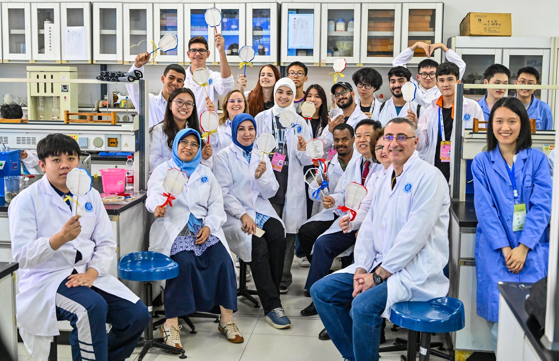 启动仪式后,资源昆虫高效养殖与利用全国重点实验室为国际师生们准备了蚕桑体验课,让国际师生们变身“蚕农”,亲身实践桑叶和人工饲料养蚕,体验手工缫丝过程并用蚕丝制作中华团扇,还走进了重庆自然博物馆,切实体验科技自然与生物进化的碰撞,感受多彩生物的魅力。