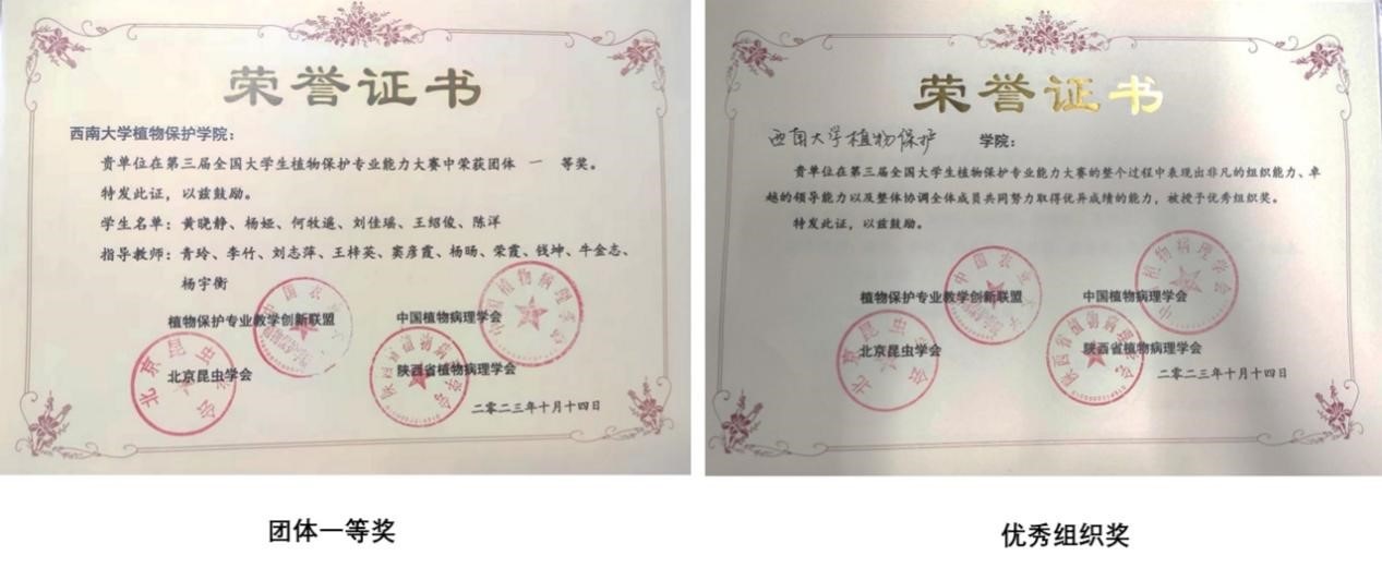10月13日至15日,第三届全国大学生植物保护能力大赛在西北农林科技大学举行。此次比赛共设置了四个模块七个项目,beat365英国官网植物保护学院青玲教授带队,共5名教师和6名学生参加比赛,荣获团体一等奖和优秀组织奖,并在昆虫解剖与绘图、昆虫微景观展示和现场标本制作等单项比赛中取得特等奖1项、一等奖1项、二等奖2项、三等奖1项的优异成绩。