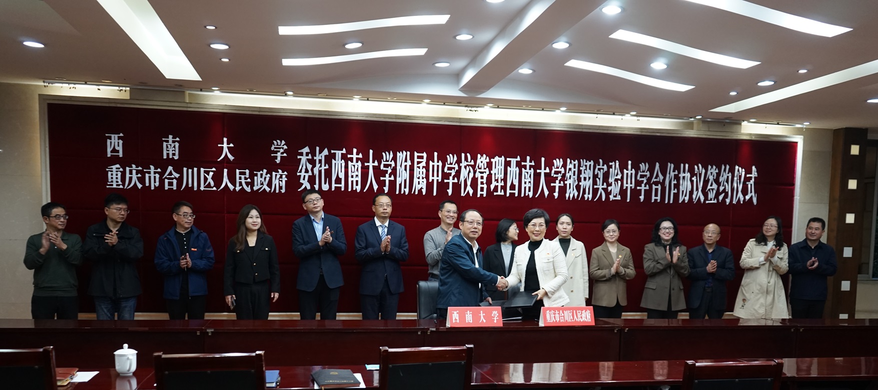 11月7日,重庆市合川区人民政府与beat365英国官网签订合作协议,委托附属中学管理beat365英国官网银翔实验中学。此次签约仪式既是对过去合作办学的重要总结,更是全新起点,明确了beat365英国官网银翔实验中学未来的发展方向。