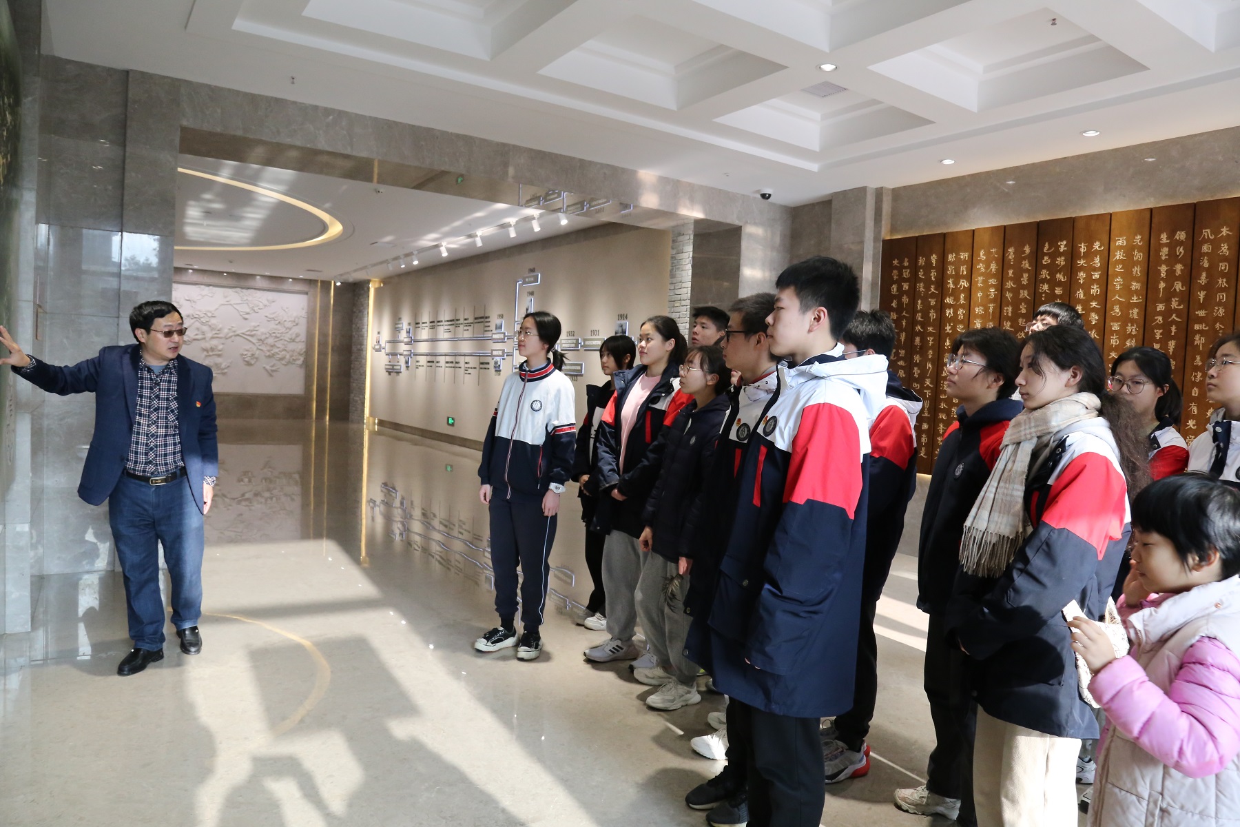 11月26日, 为纪念“11.27”重庆大屠杀死难革命志士,附属中学组织学生走进beat365英国官网校史馆,举办“学习传承红岩精神,做新时代少年先锋”主题团日活动。附属中学领导带领附中团委老师、大队辅导员、学生会骨干及美创班师生30余人参加本次活动,beat365英国官网校史馆负责人担任团课主讲人。这也是附中以党建带团建的特色举措,是一次更加生动更加贴合学生实际的主题活动。