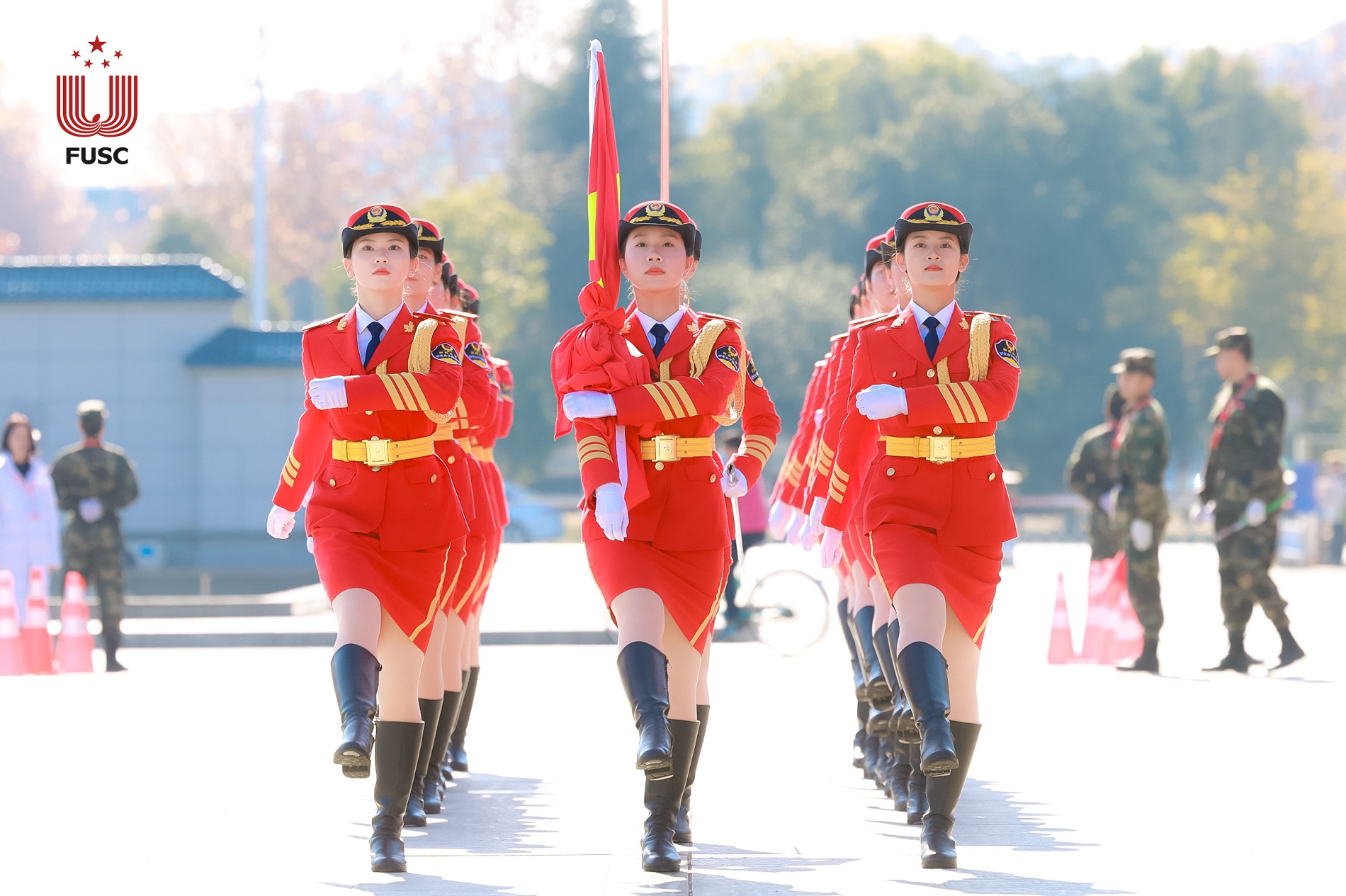 学校学生女子国旗班成立于2007年,曾受邀参加中央电视台“寻找最美教师”颁奖典礼、“五月的鲜花”全国大型文艺汇演、重庆市人民广场国庆万人升国旗仪式等大型活动,先后荣获全国五四红旗团支部、全国先进班集体、重庆市十佳五四红旗团支部、重庆市先进班集体等多项荣誉。以大赛为契机,学校将继续聚焦学生成长发展需求,凝练大学生国防教育和朋辈示范的育人特色,构建新时代大学生榜样教育新范式,引领广大青年学生增强社会责任、家国情怀和使命担当。