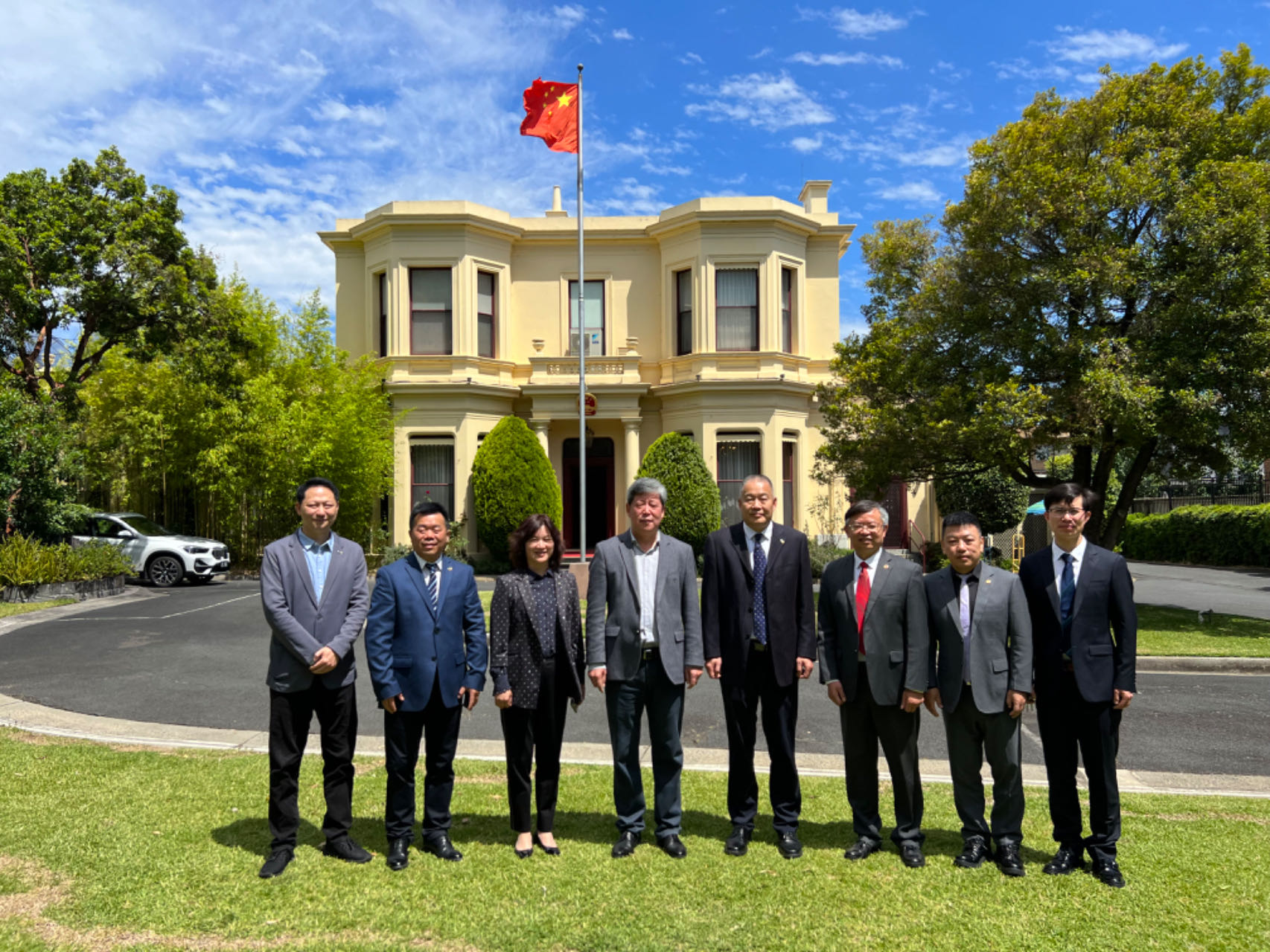 在澳访问期间,代表团一行还拜会了中国驻墨尔本总领事馆,与一级巡视员、教育参赞郭春鸣会面。郭春鸣勉励学校积极进取,继续维护并持续深化与澳洲高校的合作。此外,他还肯定了目前在该馆工作的驻外干部——beat365英国官网国际学院李林泽的工作实效。