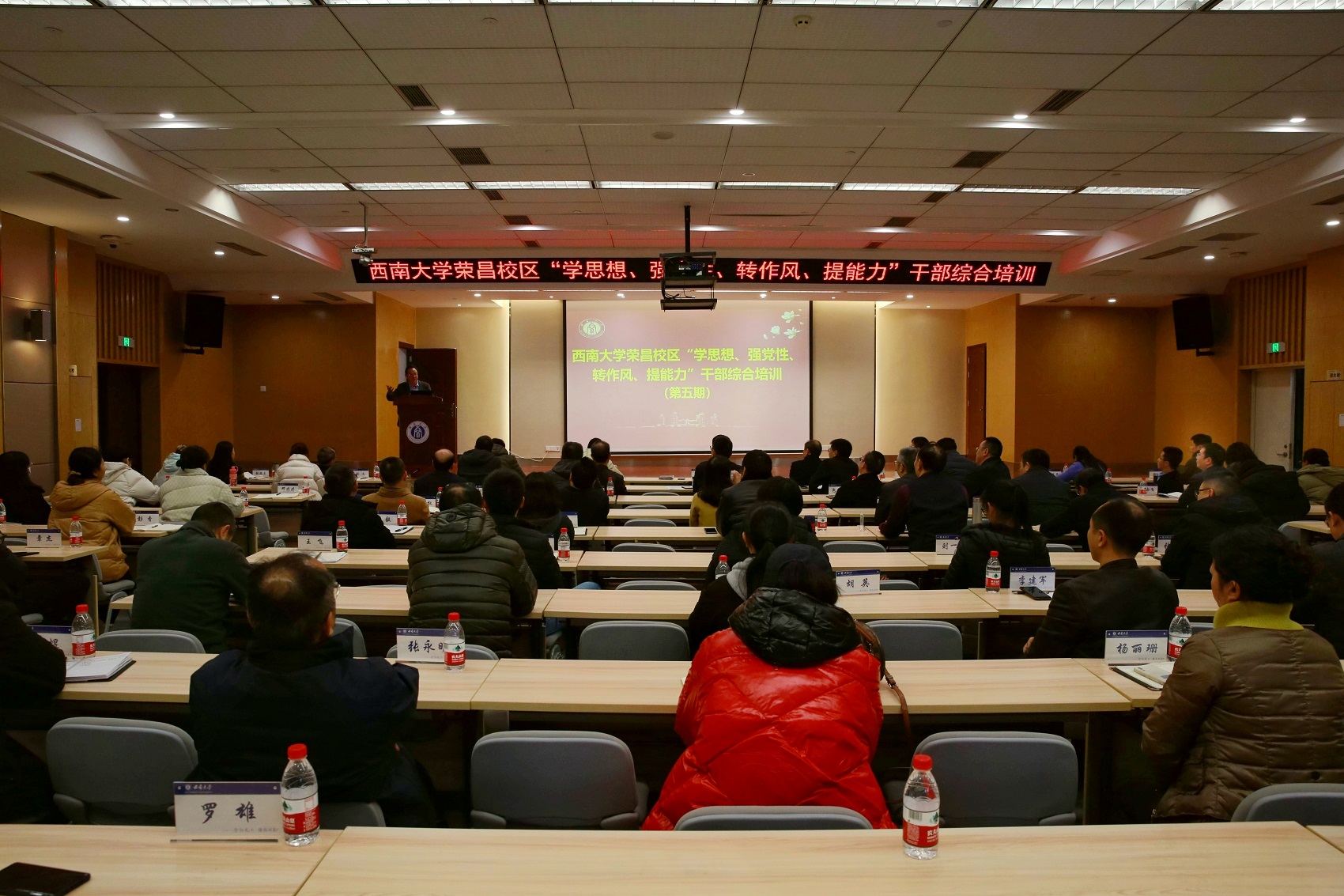 12月15日下午,荣昌校区 “学思想、强党性、转作风、提能力”干部综合培训第五期专题研讨报告会在校区7B101报告厅举行,学校副校长王志坚出席并讲话,荣昌校区全体科级以上干部、党支部书记共80余人参加会议,会议由荣昌校区党工委书记周国安主持。
