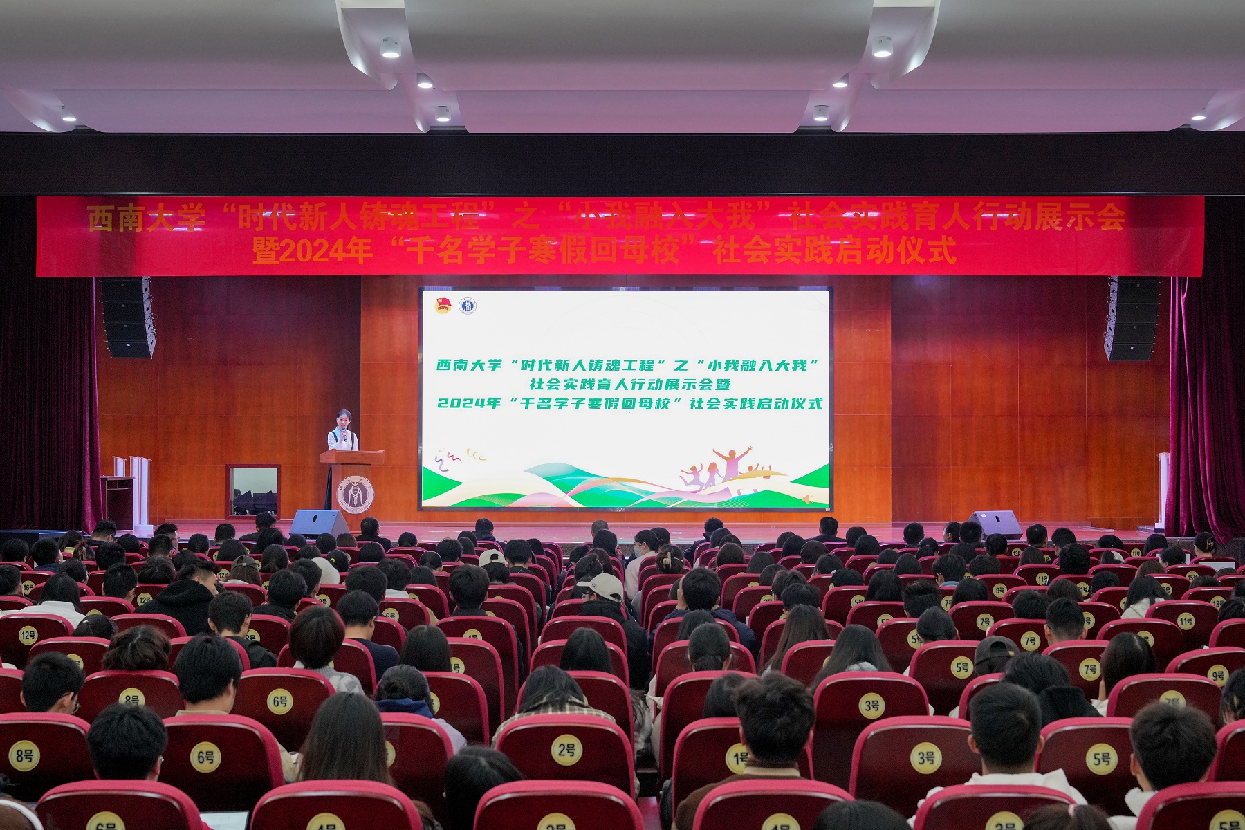 为扎实推进团员和青年主题教育,动员引领团员和青年深入学习贯彻习近平新时代中国特色社会主义思想,鼓励青年大学生在为人民服务中茁壮成长、在艰苦奋斗中砥砺意志品质、在实践中增长工作本领,总结实践经验,宣传实践成果,搭建交流平台,12月14日下午,学校“时代新人铸魂工程”之“小我融入大我”社会实践育人行动展示会暨2024年“千名学子寒假回母校”社会实践启动仪式在第二学生活动中心107报告厅举行。