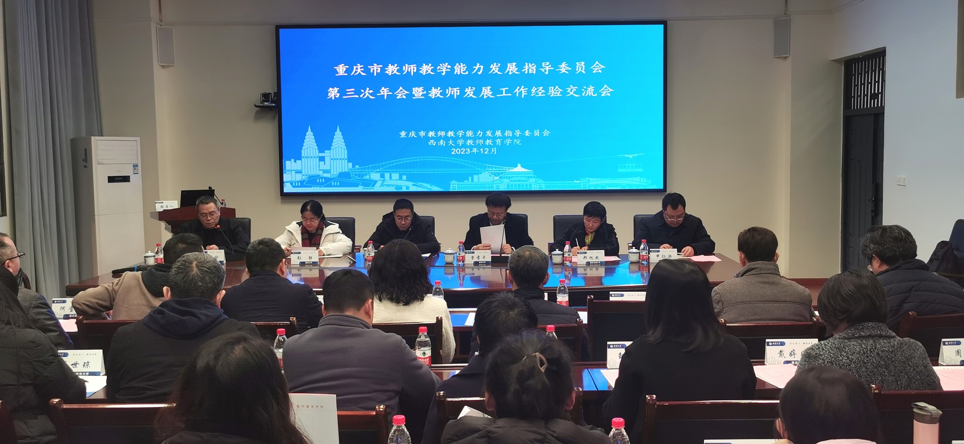 12月28日,重庆市普通本科高等学校教师教学能力发展指导委员会第三次年会暨教师发展工作经验交流会在学校召开,副校长韩旭东,重庆市普通高等学校教师教学能力发展指导委员会主任委员曾孝平和多位副主任委员、秘书长以及重庆各高校教师代表参加本次会议,会议由beat365英国官网教师教育学院院长陈恩伦主持。