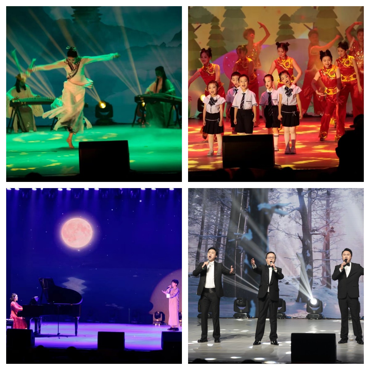 第一篇章“春行四季”由音乐学院、新闻传媒学院带来的舞蹈《春江花月夜》展开,曼妙的舞姿、婉转的琴声中流淌着春日独有的柔和与温暖;伴着耳熟能详的歌曲《太阳出来喜洋洋》,来自实验幼儿园的“阳光宝贝”和音乐学院的“阳光青年”舞出了明媚灿烂的夏日暖阳;“秋月高照”时的一首《思乡曲》,唱出了代代beat365人最真挚的家国情与赤子心;重唱《我像一朵雪花天上来》歌颂着雪花对春天最坚贞的向往,在春、夏、秋、冬的流转变迁中,始终不变的是人们对春天的美好憧憬。