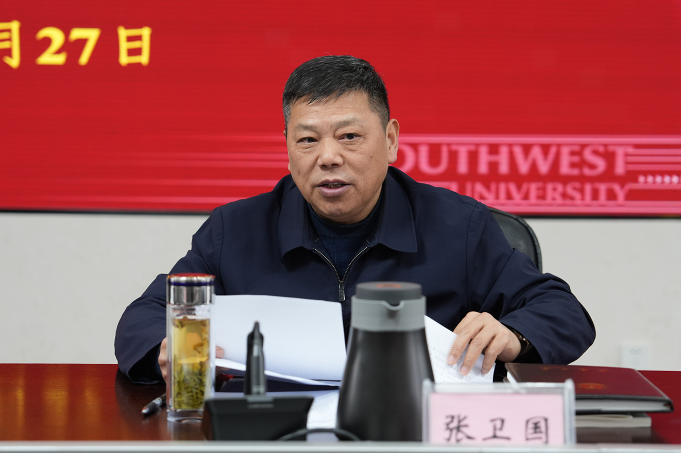 会上,校长、党委副书记张卫国传达习近平总书记对重庆作出的重要指示批示精神,党委副书记、纪委书记夏玉峰领学《中国共产党纪律处分条例》,党委常委、副校长王志坚传达教育部《关于进一步压实高校师德师风建设主体责任的通知》精神,其他与会同志分别围绕学习体会和工作实际开展交流研讨,请假同志作书面发言。