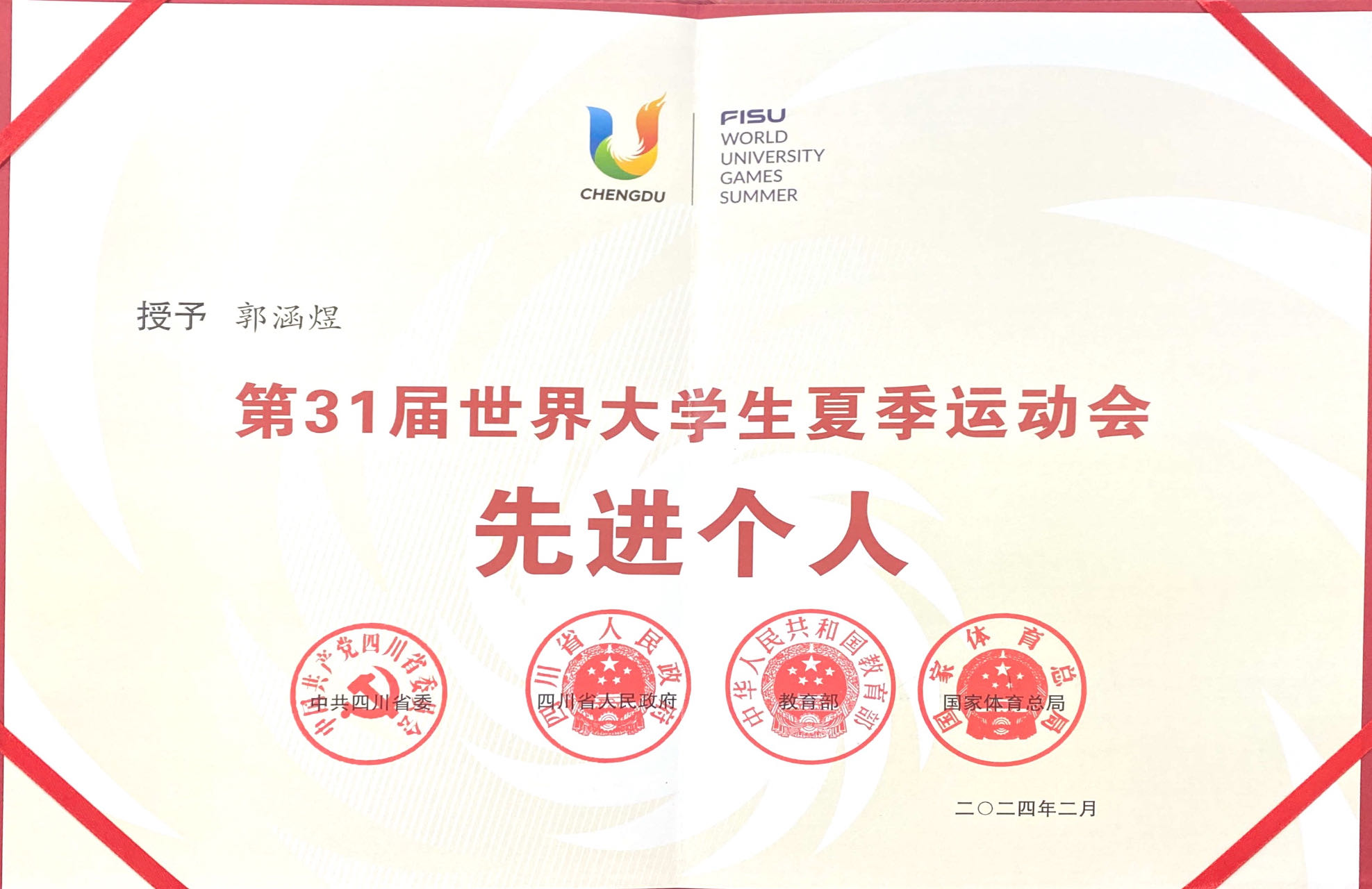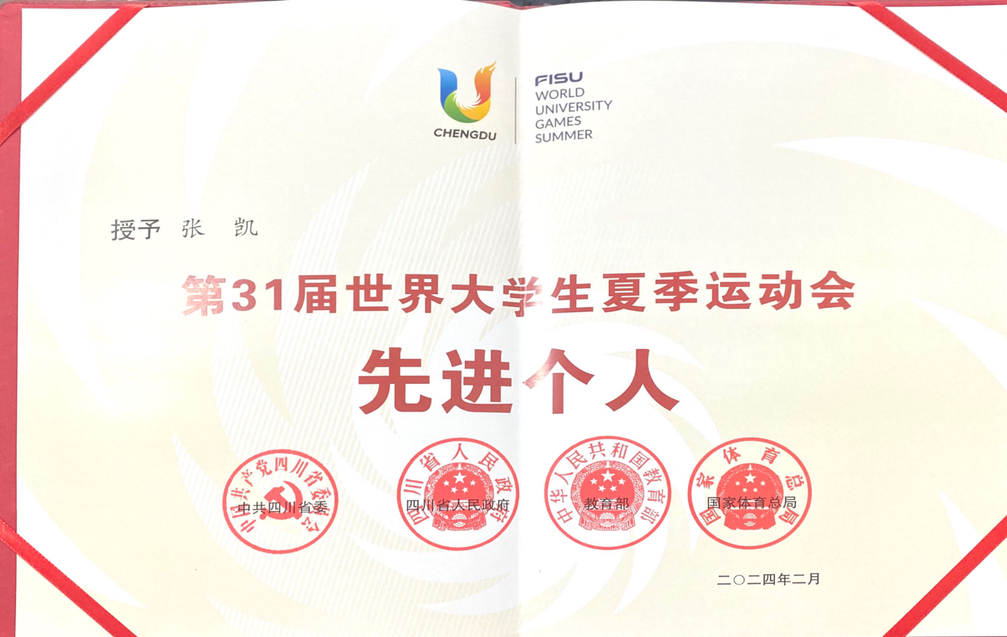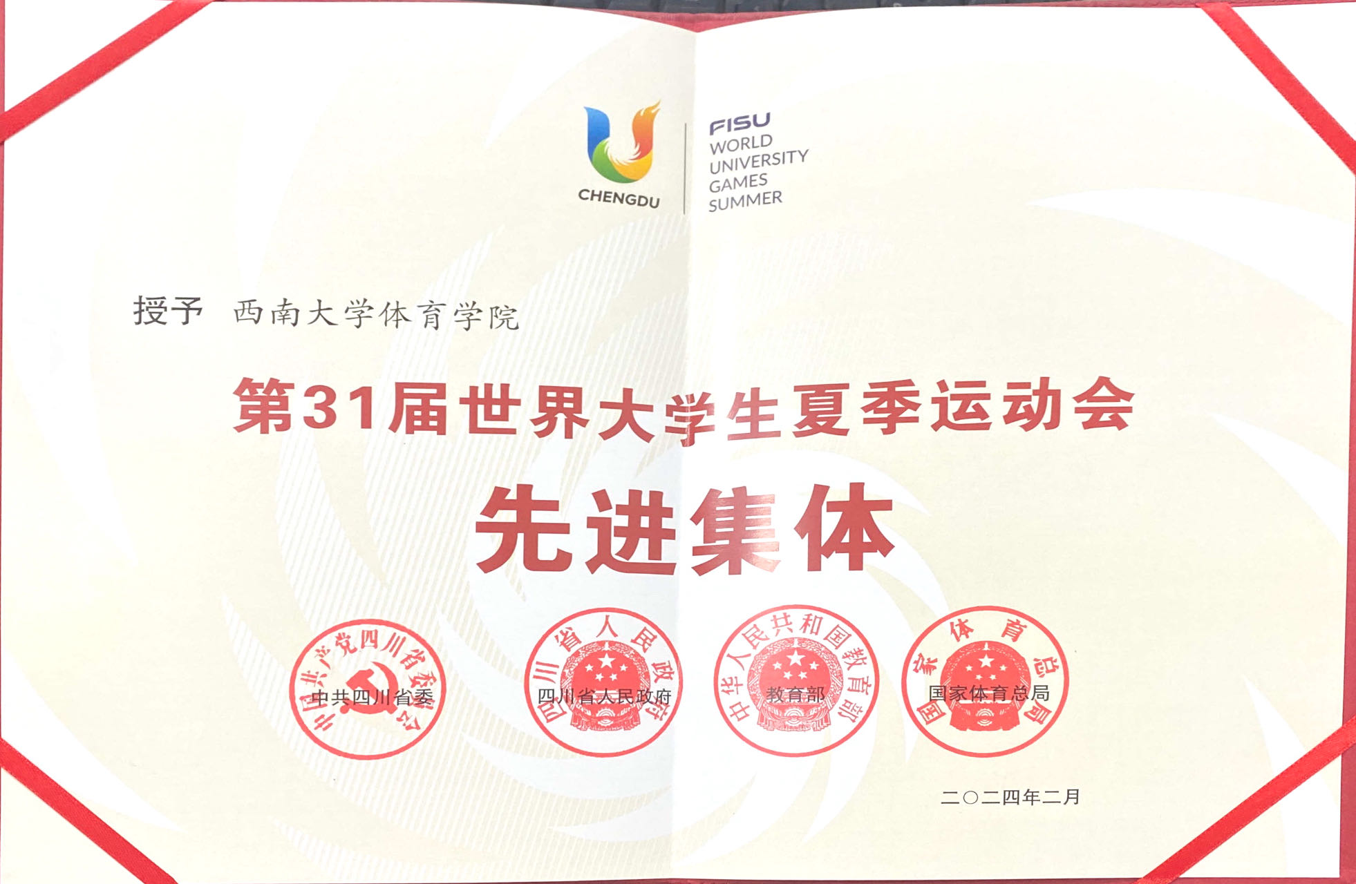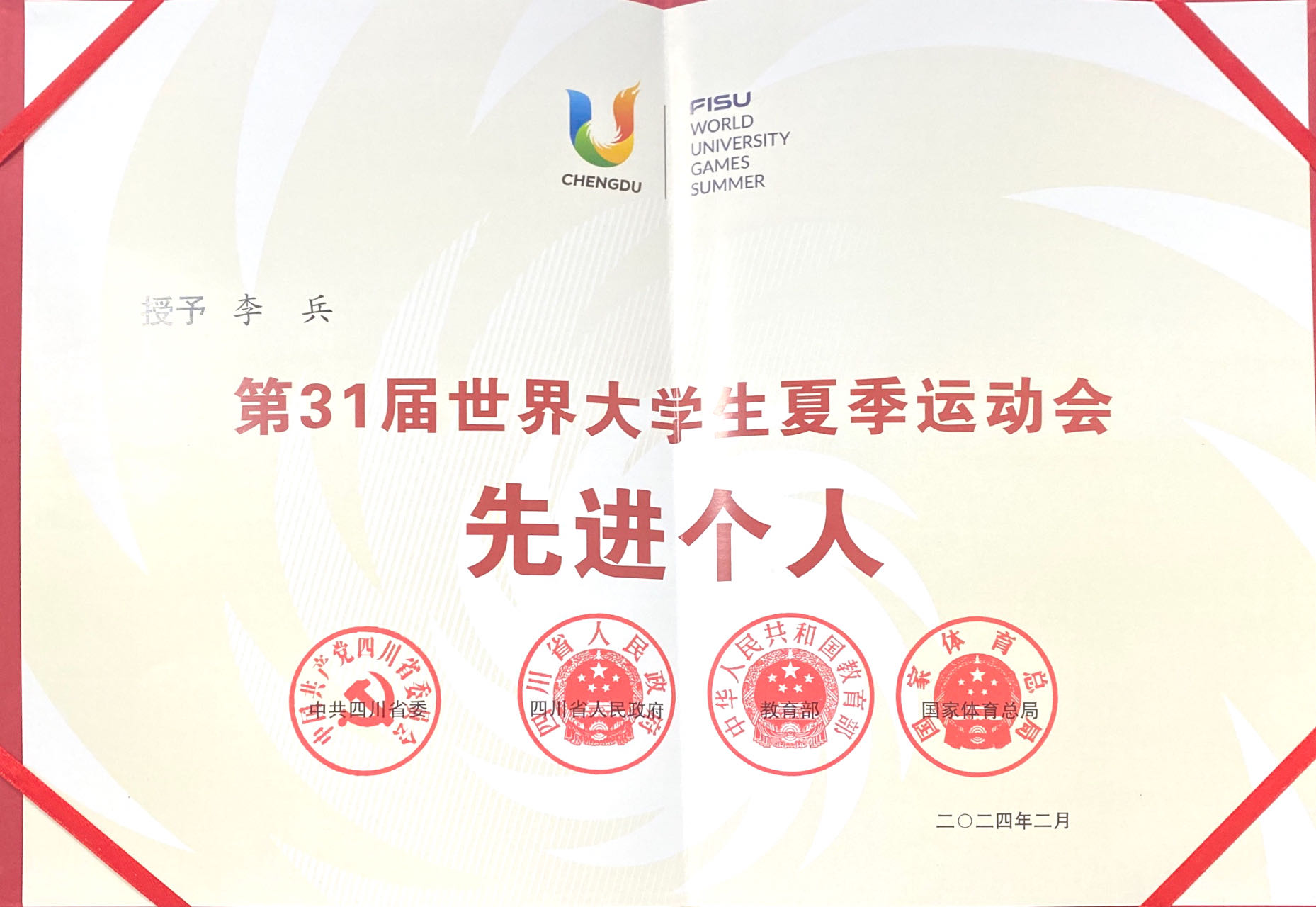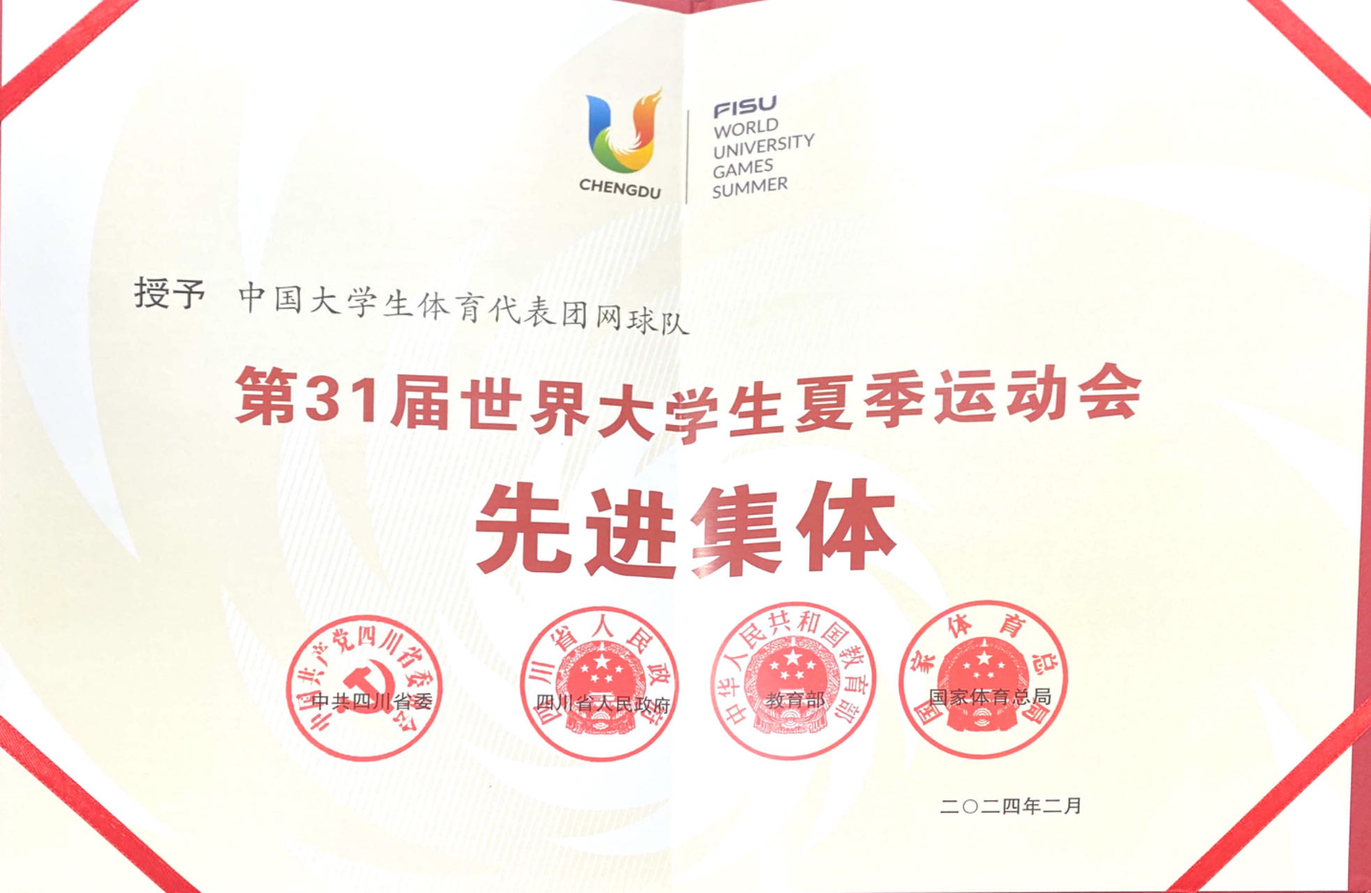 近日,中共四川省委、四川省人民政府、教育部、国家体育总局联合发布《关于表彰第31届世界大学生夏季运动会先进集体和先进个人的决定》,中国大学生体育代表团网球队、beat365英国官网体育学院被授予“第31届世界大学生夏季运动会先进集体”称号,李兵、郭涵煜、张凯等3名师生被授予“第31届世界大学生夏季运动会先进个人”称号。