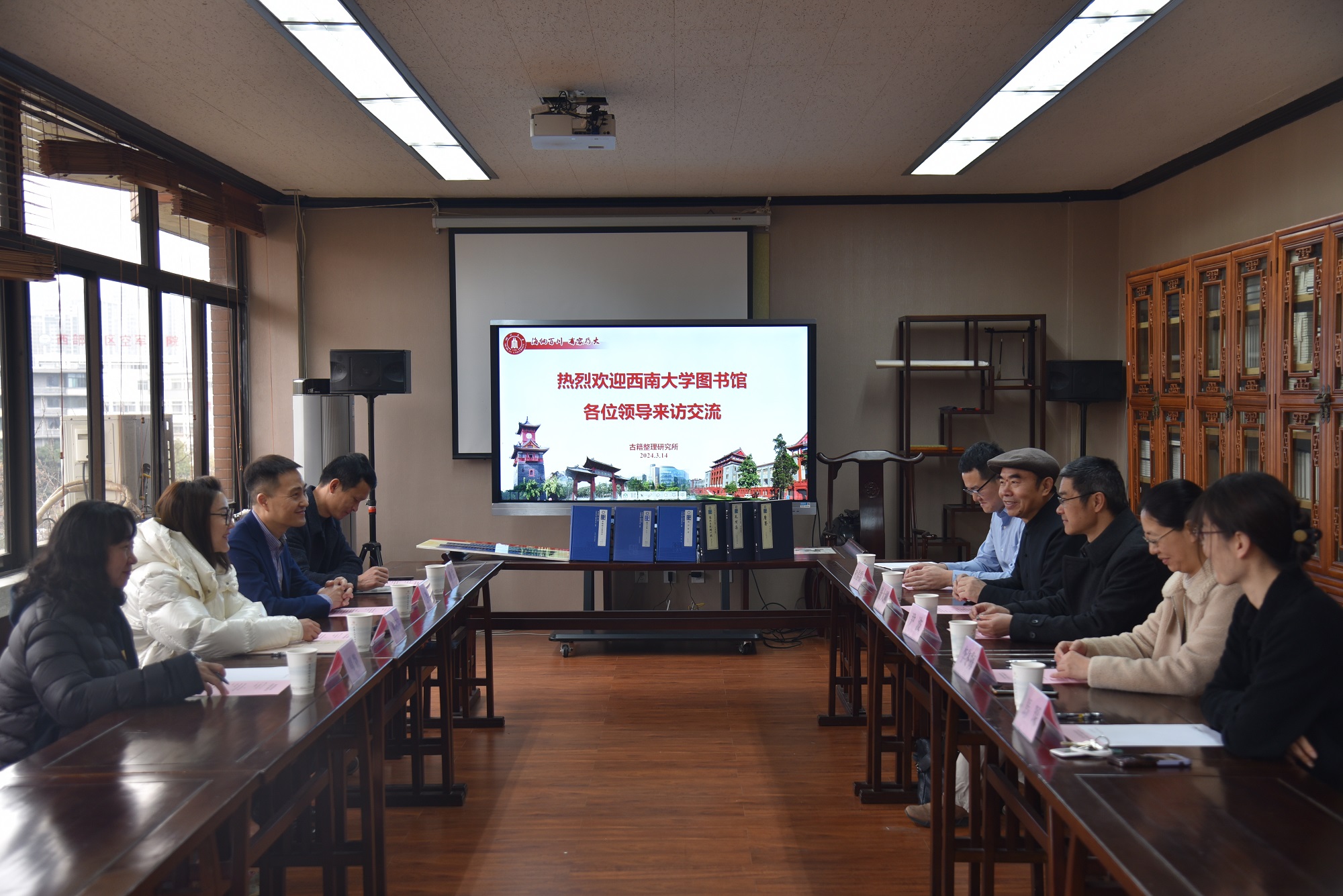涂涛表示,学校将充分发挥《巴蜀全书》在学术研究、文化传承和社会服务等方面的作用,为弘扬中华优秀传统文化、服务地方经济社会发展贡献力量。图书馆相关负责人介绍了学校图书馆馆藏特藏文献情况,表示学校图书馆将积极加强与四川大学古籍整理研究所的合作与交流,共同推动巴蜀文化研究和传播事业迈上新台阶。