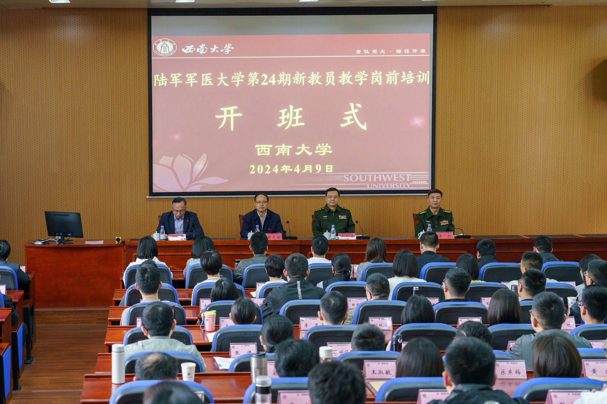 4月9日下午,陆军军医大学第24期新教员教学岗前培训在学校顺利开班。陆军军医大学副校长兼教育长黄春基、学校副校长周光明出席开班式并讲话。继续教育学院院长程龙主持开班式。