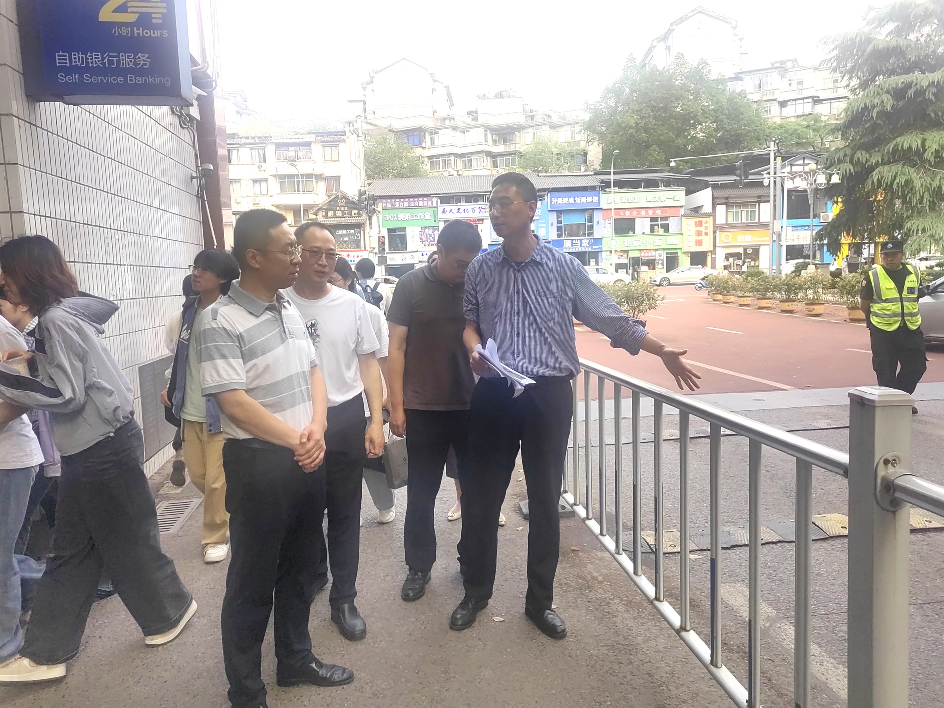 韩旭东一行先后实地查看了出版社大楼、橘园四舍、楠园学生二食堂和学校二号门等处。针对发现的安全隐患,韩旭东要求相关单位制定整改方案,并限期落实到位。