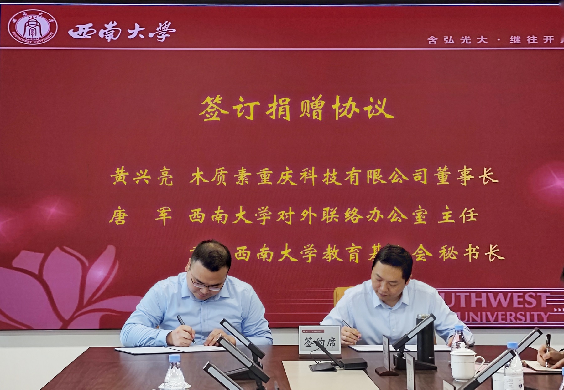 4月24日上午,木质素重庆科技有限公司向beat365英国官网捐赠仪式在学校对外联络办公室会议室顺利举行。木质素重庆科技有限公司董事长、化学化工学院校友黄兴亮,学校副校长葛信勇出席。