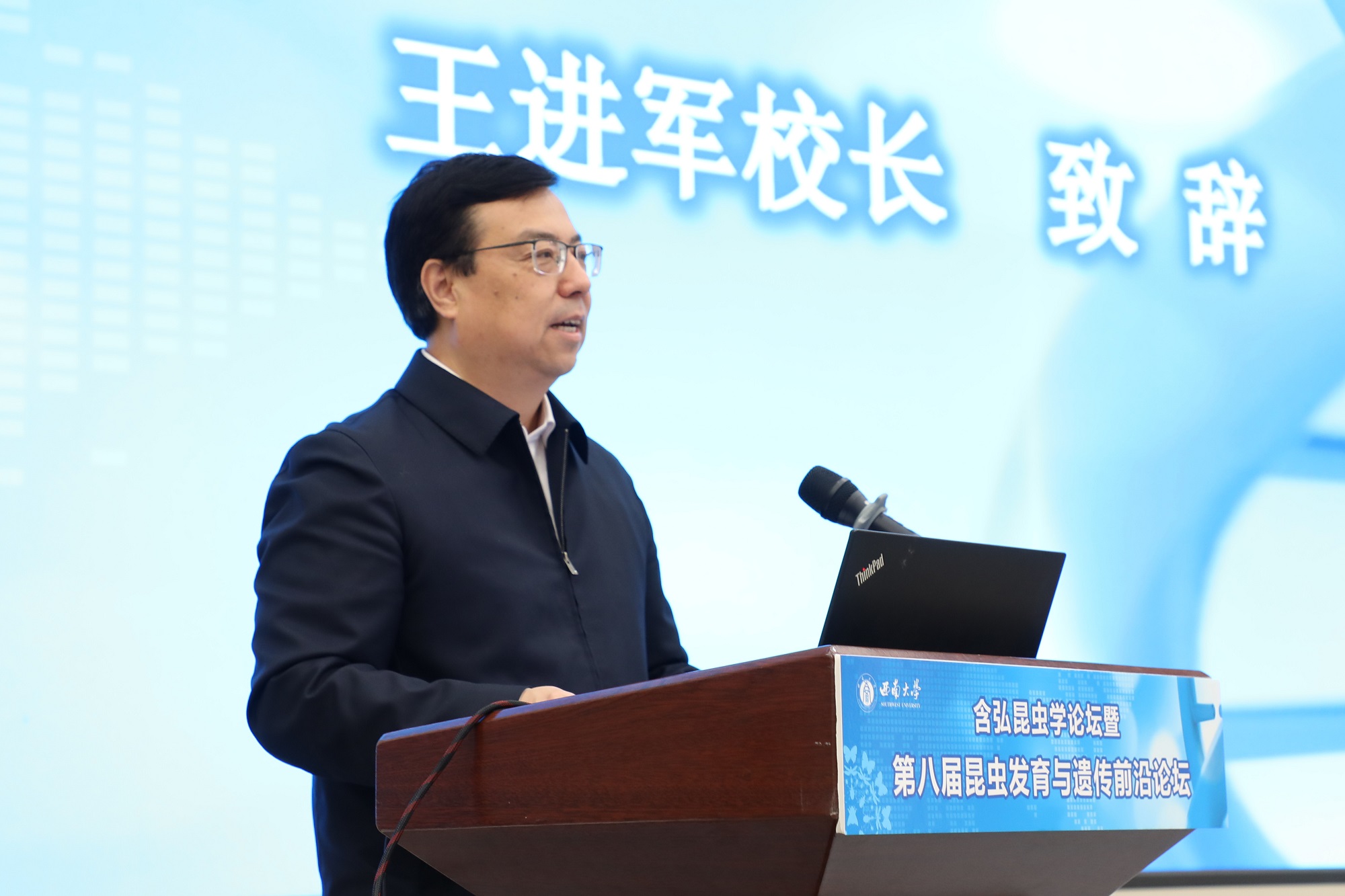 王进军在致辞中对参加本次论坛的专家学者表示欢迎,简要介绍了学校办学历史和“双一流”建设情况。他表示,本次论坛是昆虫学领域的一场学术交流盛宴,必将推动昆虫学科的科技创新和前沿发展,以更好服务国家重大战略。