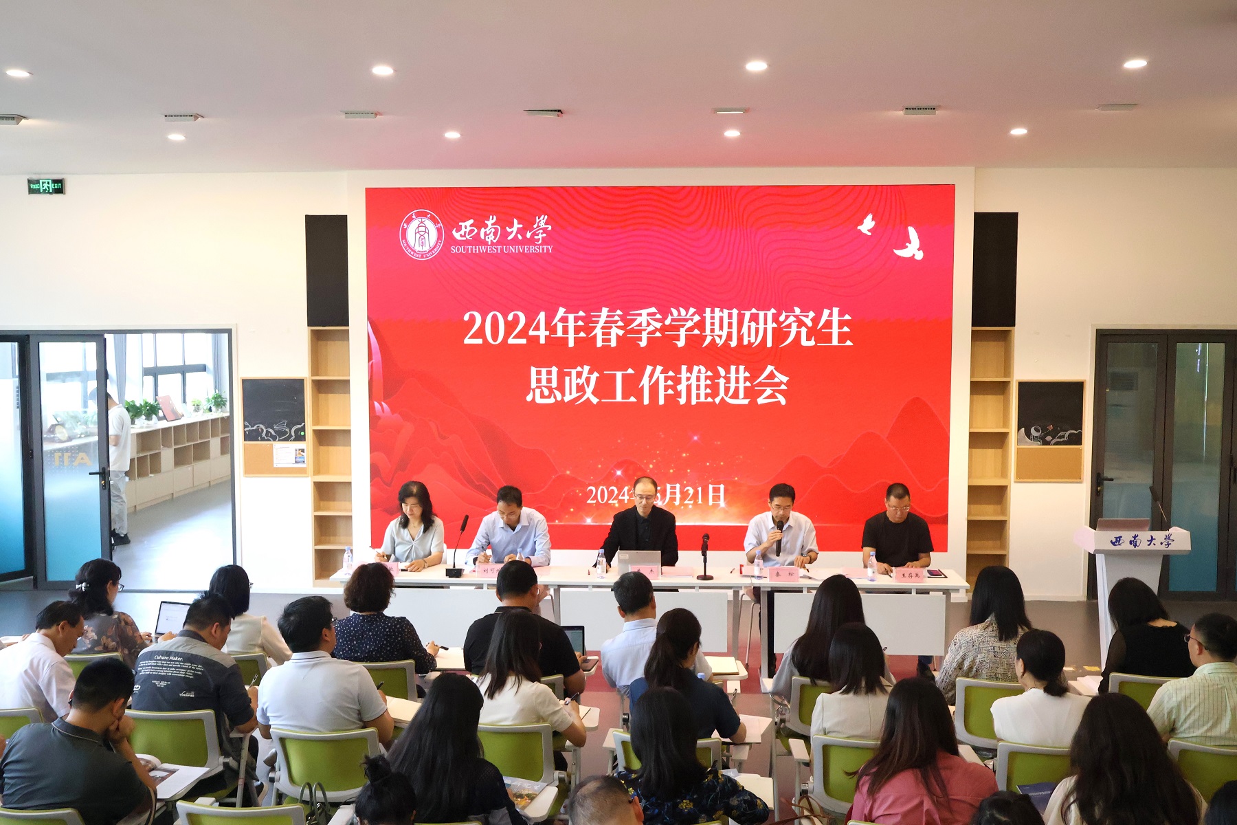 会上,秦松回顾了本学期研究生工作推进情况,并对近期研究生思想政治教育和“毕业季”日常管理重点任务进行了部署。相关职能部门对近期工作作介绍。