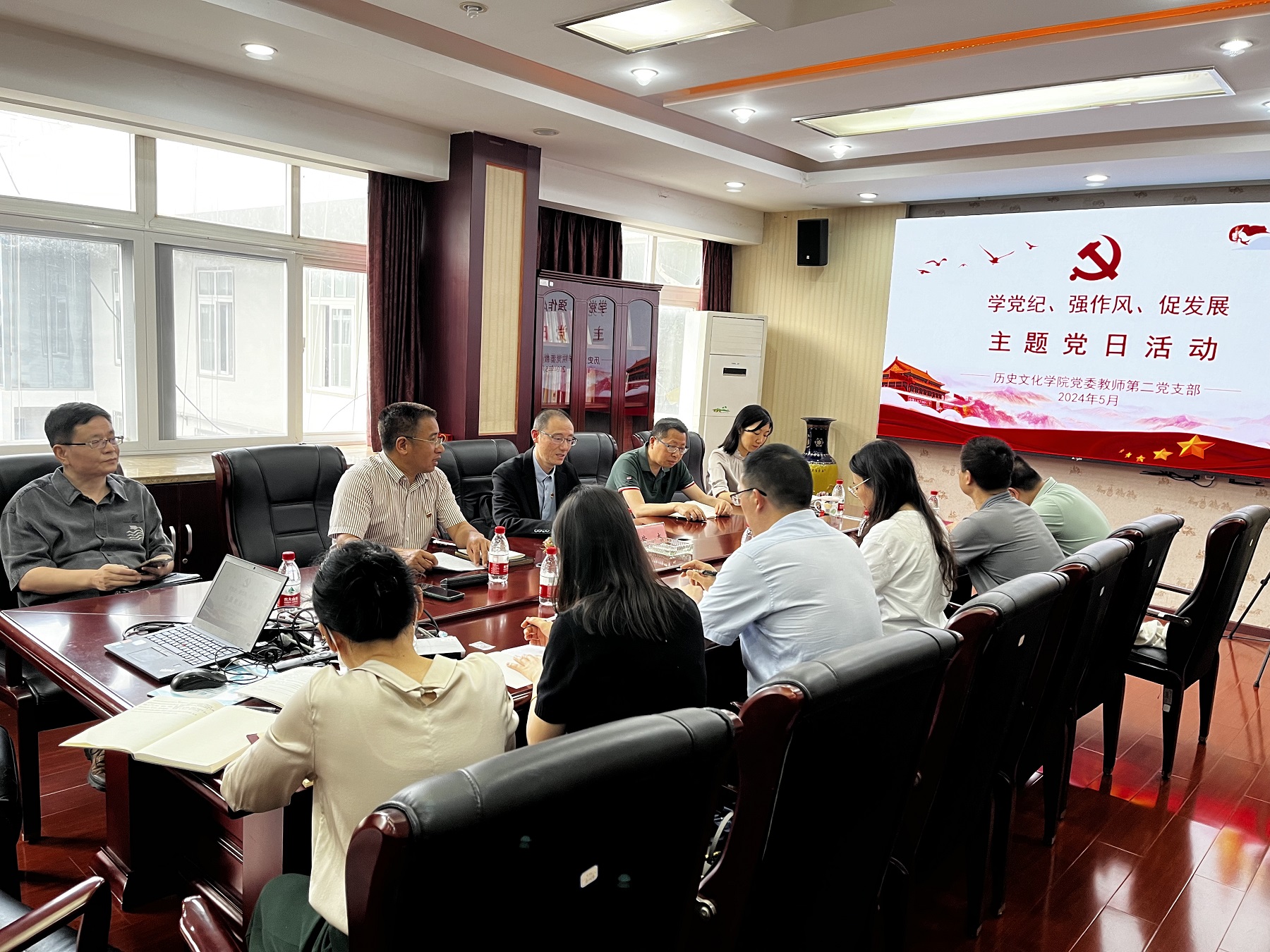 5月17日下午,历史文化学院教师第二党支部举行“学党纪、强作风、促发展”主题党日活动,学校党委副书记黄杰出席。
