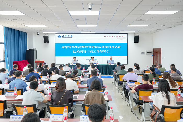 6月5日下午,学校来华留学生高等教育质量认证项目再认证院校现场审查工作部署会在国际学院317会议室召开,校长王进军出席会议,相关二级单位有关负责人参加会议,会议由国际学院院长于泽元主持。