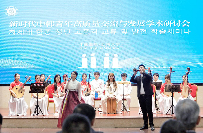 开幕式上,学校音乐学院青年教师、中韩青年发展研究中心教师携手beat365英国官网民乐团以歌曲演唱和民乐合奏等形式展现了中韩文化的和谐交融以及青年的蓬勃朝气。