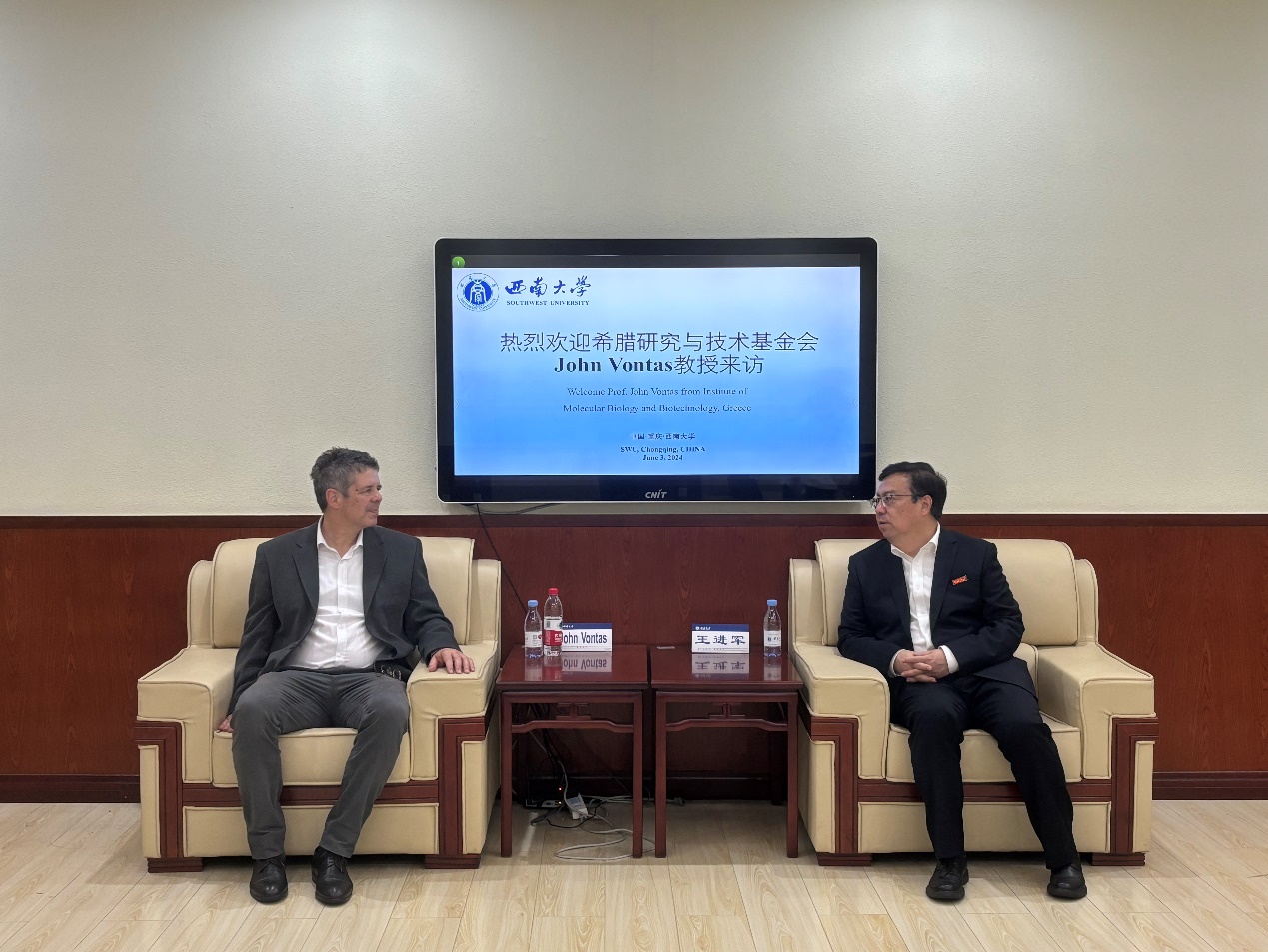6月3日,希腊分子生物学与生物技术研究所所长约翰·冯塔斯(John Vontas)教授来校访问。校长王进军会见客人,国际合作与交流处相关负责人参加会见。