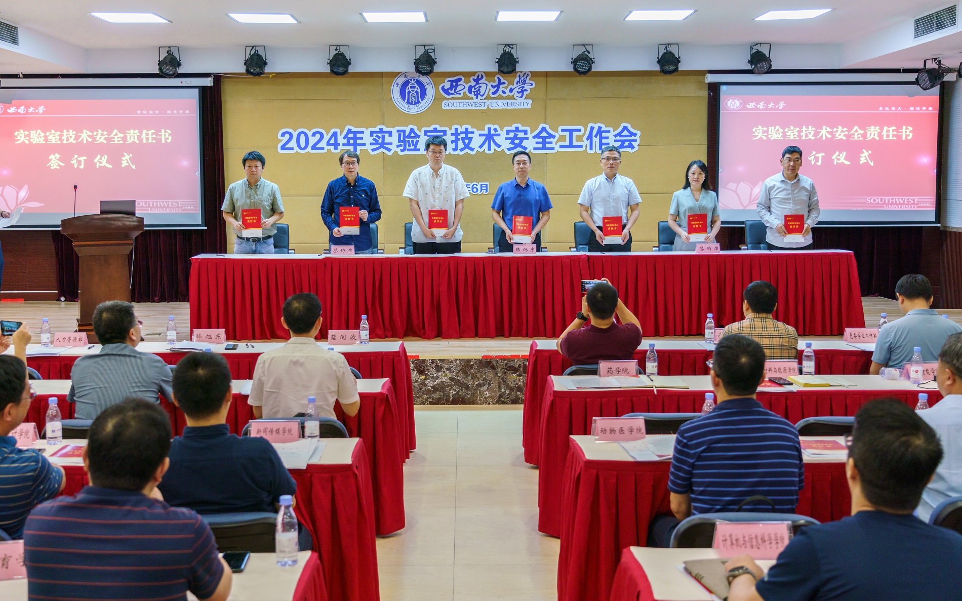 随后,韩旭东与二级单位代表现场签订《beat365英国官网实验室技术安全责任书》,并在会上传达了全国消防电话视频会议中关于高校消防管理工作的相关精神,以及重庆市教委关于疏通消防通道专项整治工作的相关要求。