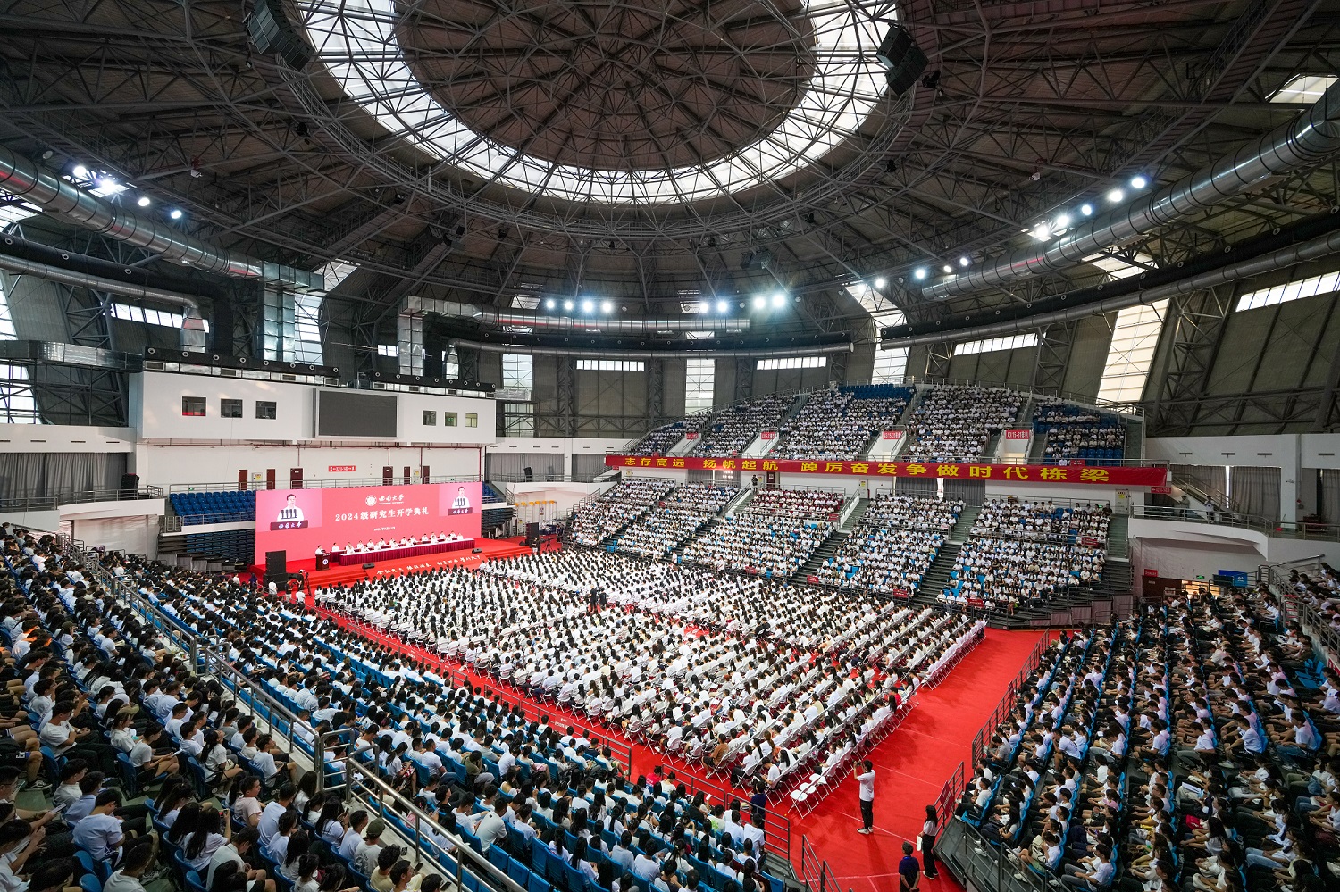 9月11日上午,学校2024级研究生开学典礼暨“开学第一课”在中心体育馆举行。校领导、党委常委出席典礼。研究生教育工作领导小组成员、各研究生培养单位党政主要负责人、分管研究生工作负责人、研究生指导教师代表、辅导员、教学秘书,2024级全体研究生参加典礼。典礼由党委副书记黄杰主持。