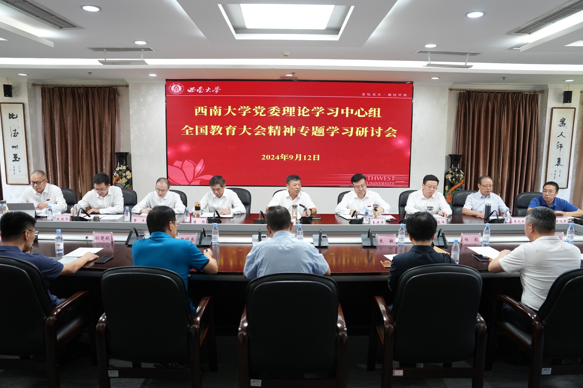 9月12日上午,学校党委理论学习中心组召开专题学习会,深入学习贯彻全国教育大会精神。会议由党委书记张卫国主持,全体在校校领导、党委委员、职能部门和学院(部)主要负责人代表参加。