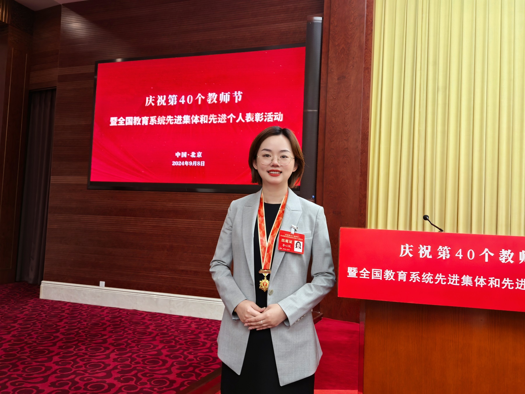 9月8日,庆祝第40个教师节暨全国教育系统先进集体和先进个人的表彰活动在京举行,习近平总书记亲切会见受表彰代表,李心悦受邀参会。“有幸参加表彰大会并受到习近平总书记接见,心情非常激动。”李心悦表示,将继续奋发努力,牢记辅导员的责任使命和初心担当,做好青年大学生的知心人、热心人和引路人,为培养德智体美劳全面发展的社会主义建设者和接班人贡献自己的力量。