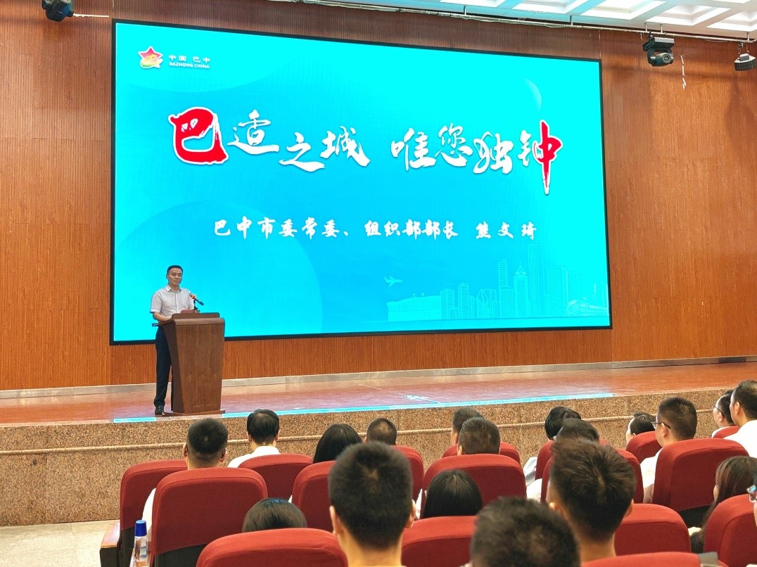 随后,巴中市第七届“智汇巴中•才领未来”招才引智推介活动在学校圆顶学生活动中心举行。副校长葛信勇出席活动并致辞。活动期间,熊文琦围绕巴中市自然风景、地理优势、经济发展和“新苗培优”计划等内容向同学们作了推介宣讲,欢迎beat365学子到巴中施展才华,成就事业。