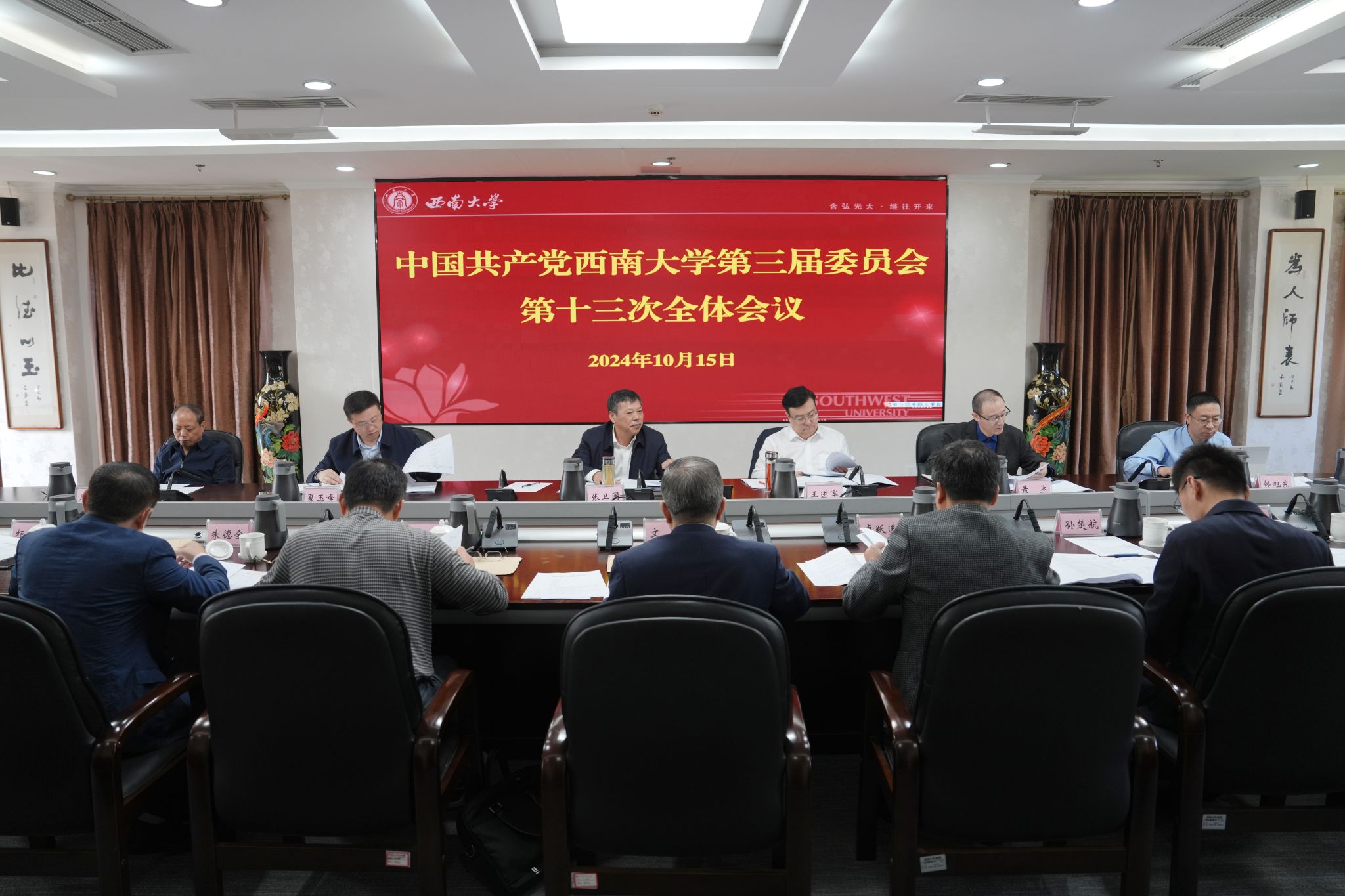 中共beat365英国官网第三届委员会第十三次全体会议于10月15日上午在行署楼A栋第五会议室召开,全体在校校领导、党委委员参加会议,会议由党委书记张卫国主持。会议听取并审议通过了学校《深入贯彻落实党的二十届三中全会精神进一步深化综合改革工作方案》和巡视整改落实方案。