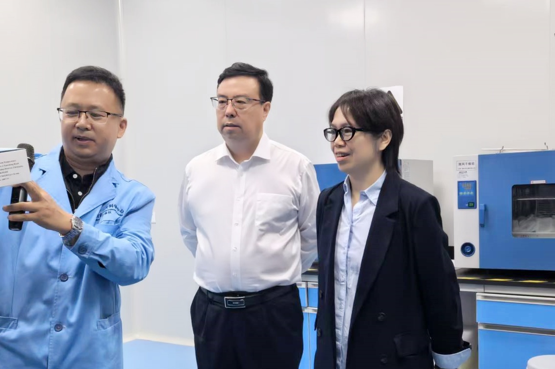 刘莉华一行首先参观了种质创制大科学中心展厅,详细听取中心首席科学家夏庆友教授关于中心战略定位、发展规划、关键技术攻关和研发进展等方面的汇报。在家蚕、水产、罗非鱼等物种创制区,刘莉华对各创制团队自主研发设施设备和工程化种质创制工作开展情况表示肯定,并与团队专家进行深入交流。在油菜和马铃薯创制区,团队负责人依次介绍了粮油作物油菜和马铃薯的创制攻关进程及推广应用现状,刘莉华边听讲解边询问细节,对已产出的阶段性成果给予赞许。