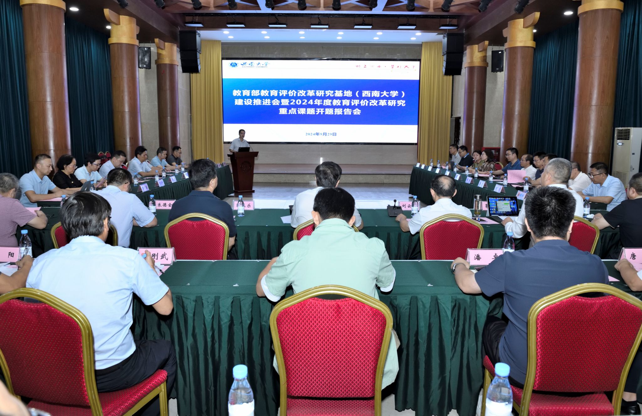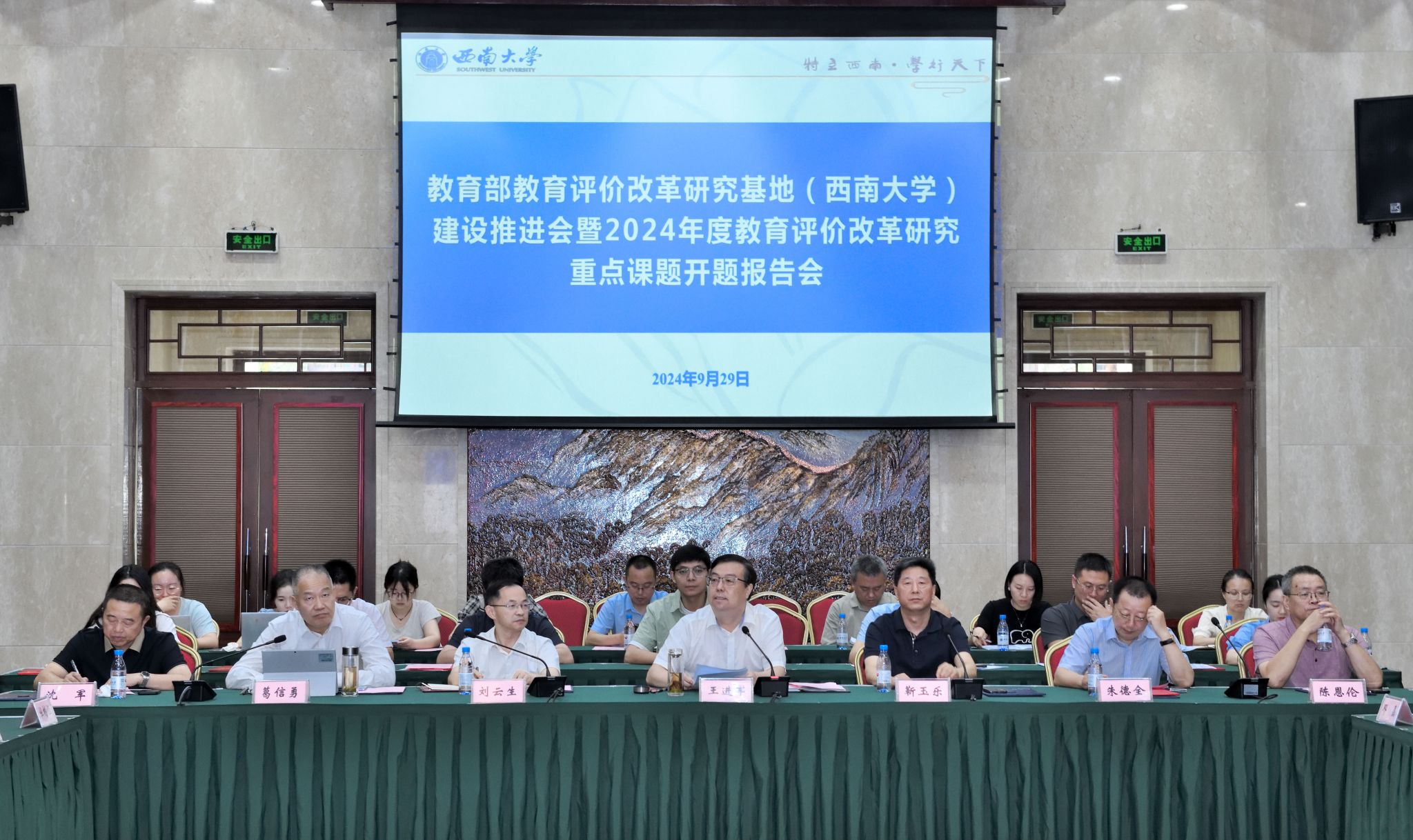 9月29日下午,教育部教育评价改革研究基地(beat365英国官网)建设推进会在东方红会议厅召开。深圳大学教育学部主任、文科资深教授靳玉乐,重庆市教育评估院院长刘云生,重庆市教育科学规划办副主任、市教科院科研处处长沈军,教育评价改革研究基地负责人、学术委员会委员以及基地研究人员参会。校长王进军,副校长、教育部教育评价改革研究基地(beat365英国官网)主任葛信勇出席会议。学校社会科学处处长王牧华主持会议。
